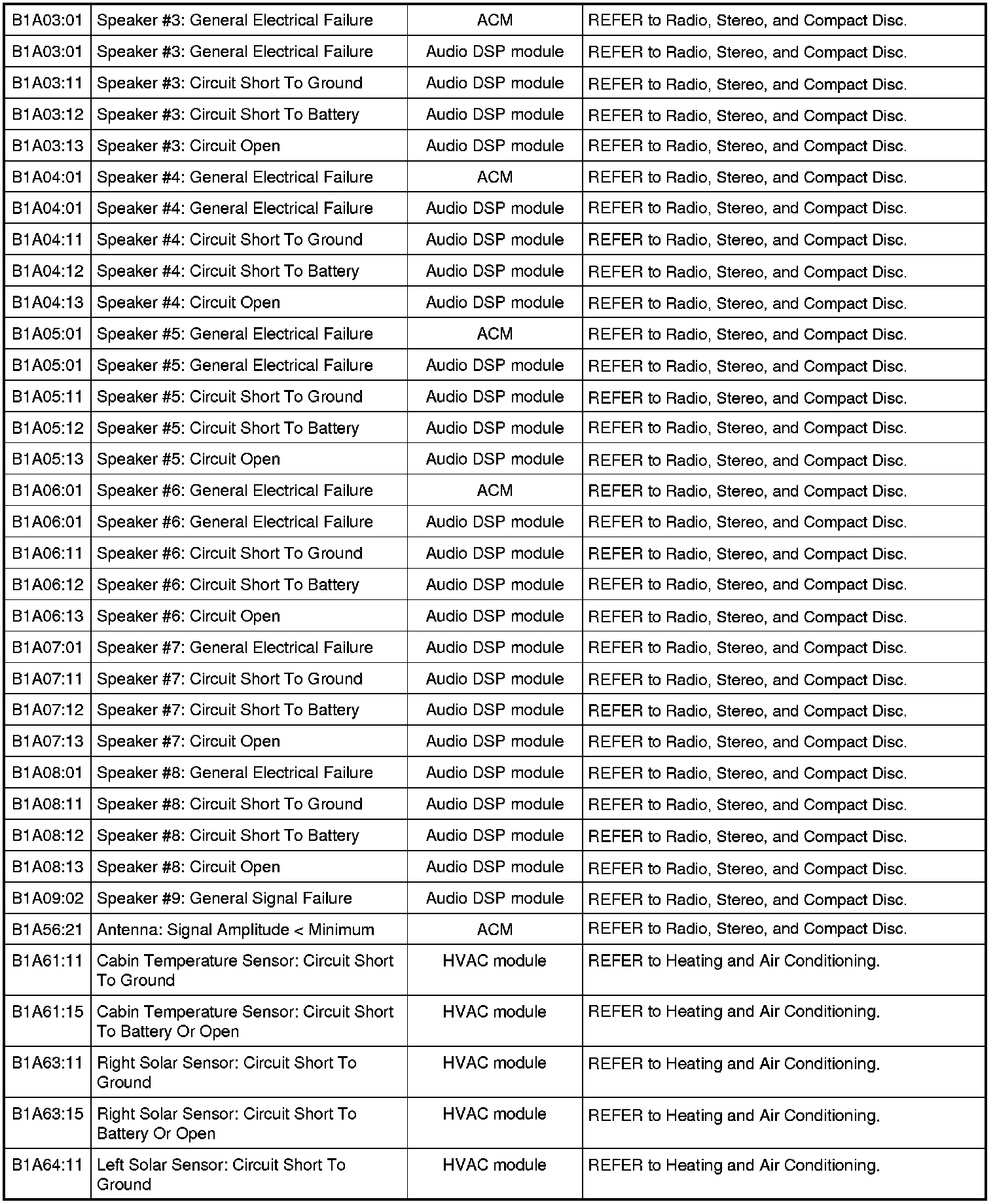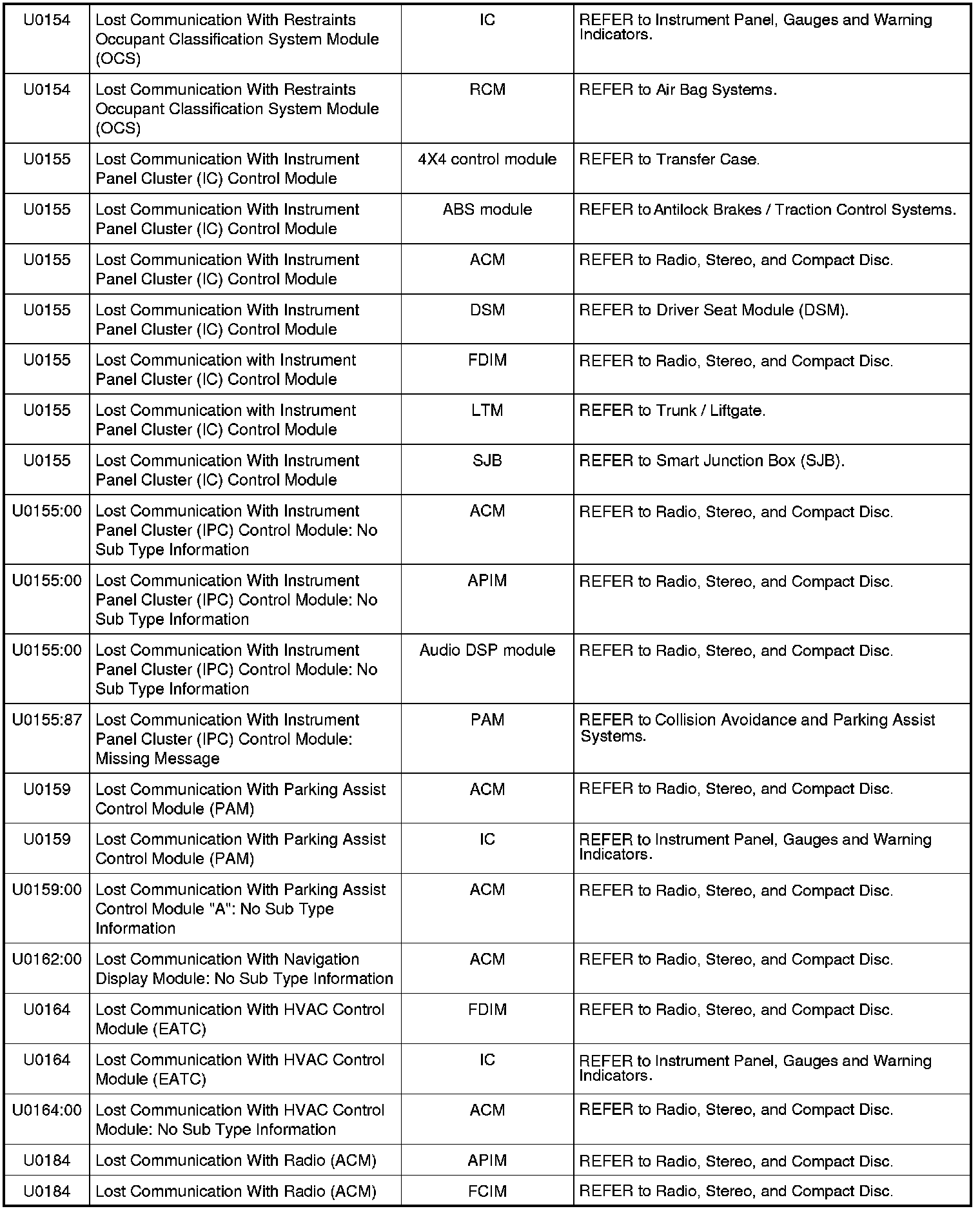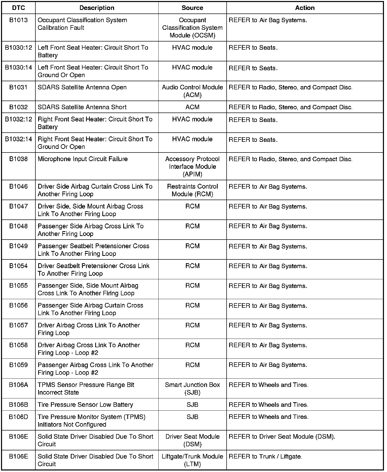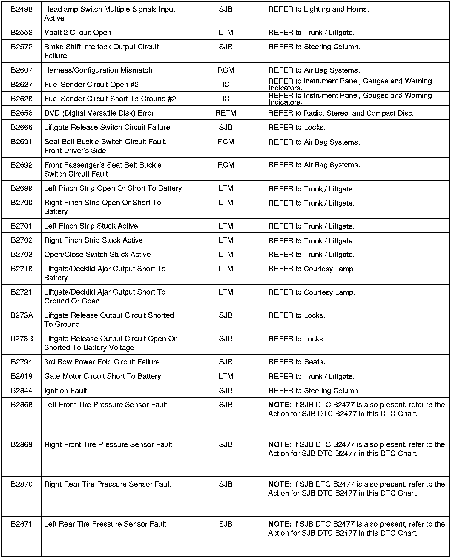 NOTE: Some of these modules utilize a 5-character DTC followed by a 2-character failure-type code. The failure-type code provides information about specific fault conditions such as opens, or shorts to ground. Continuous memory DTCs have an additional 2-character DTC status code suffix to assist in determining DTC history.
