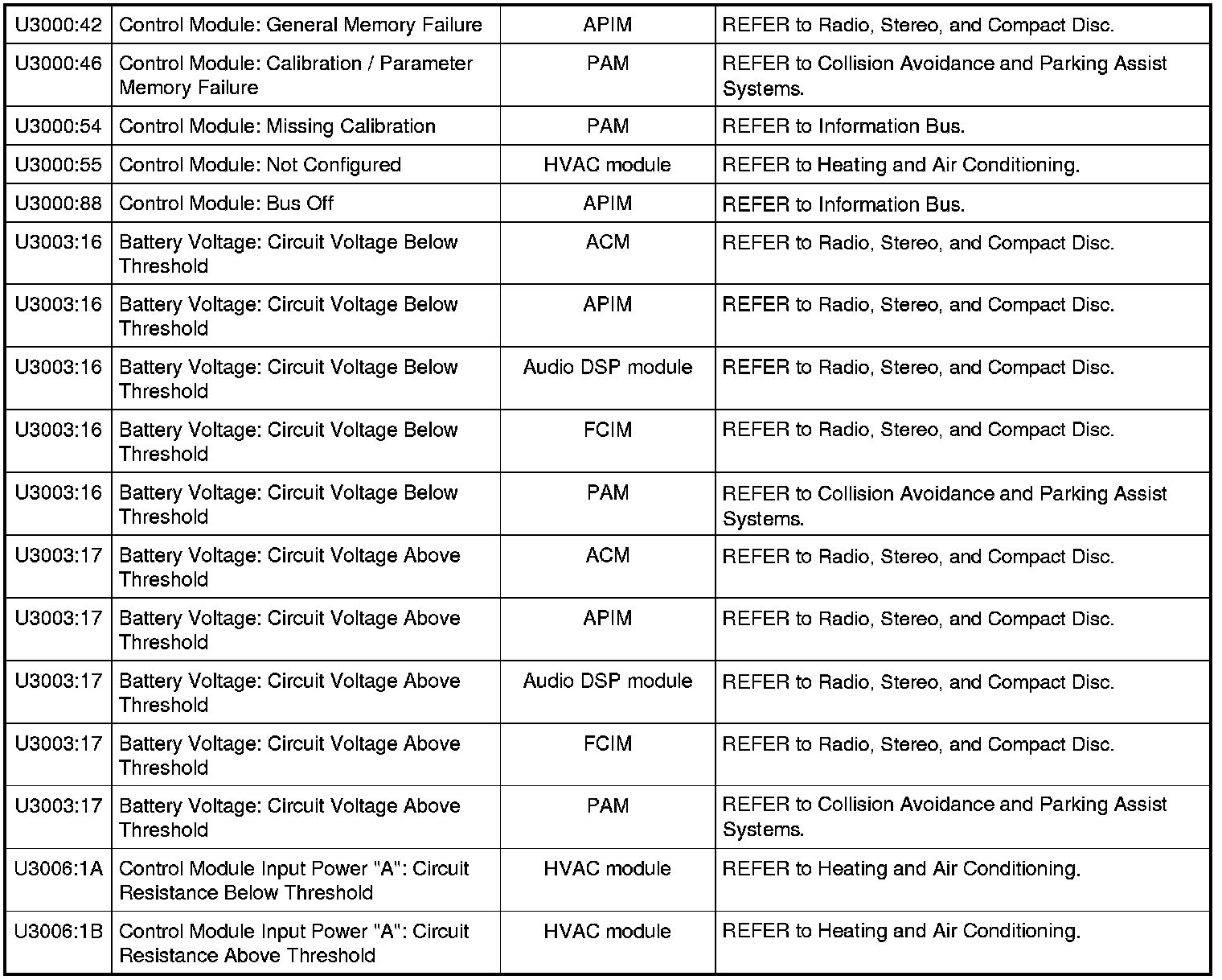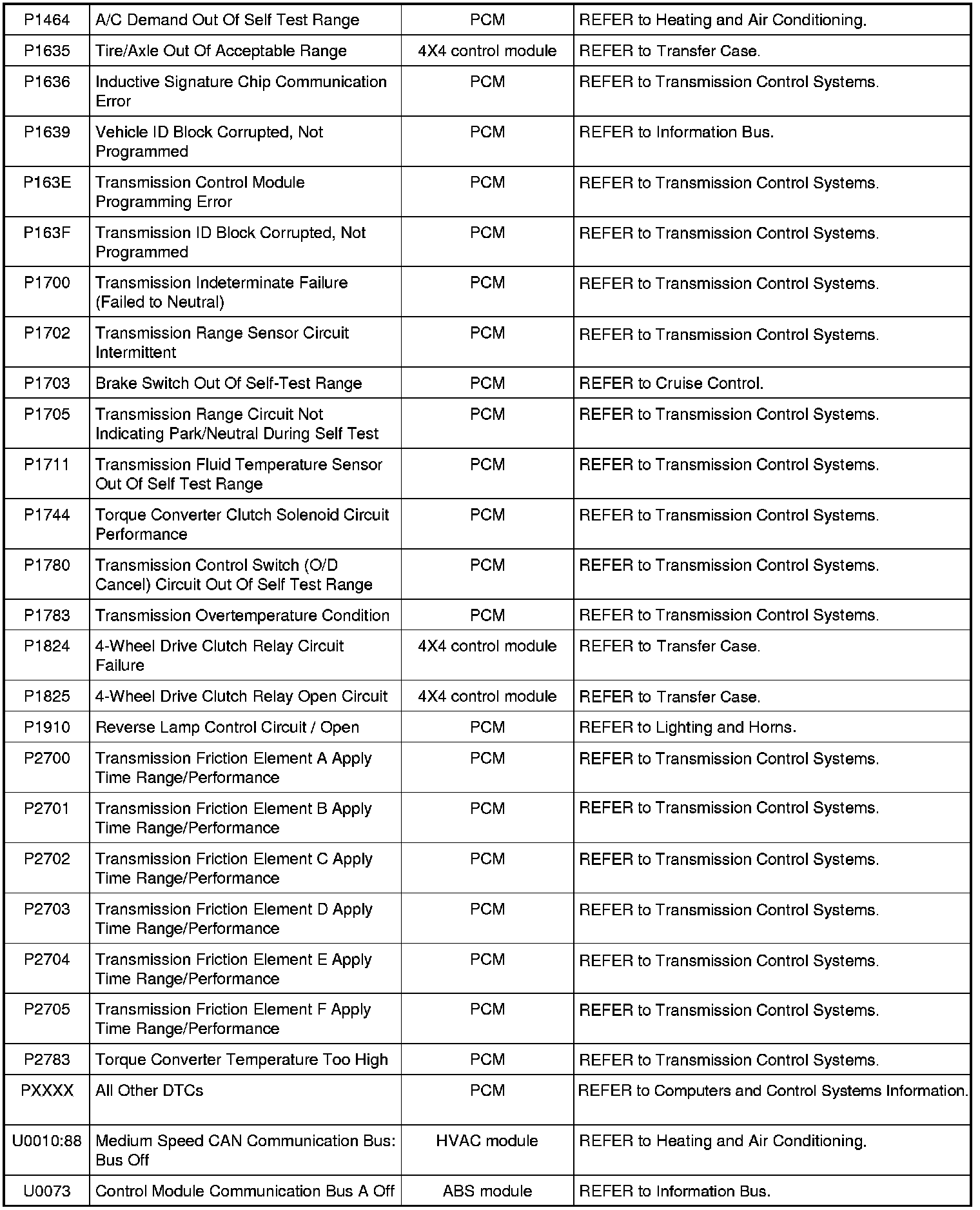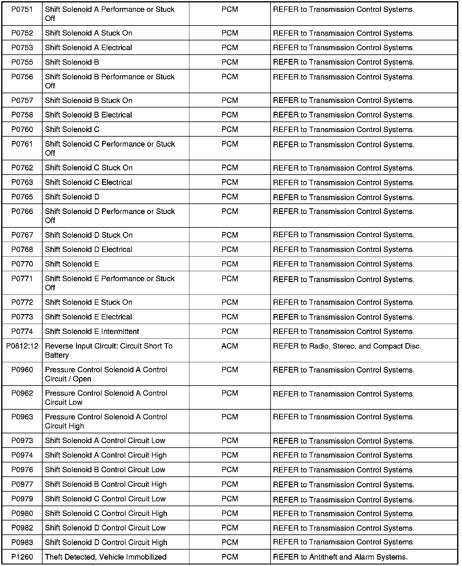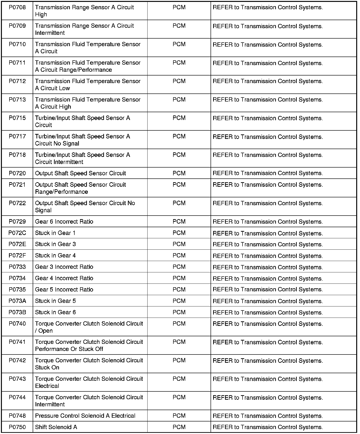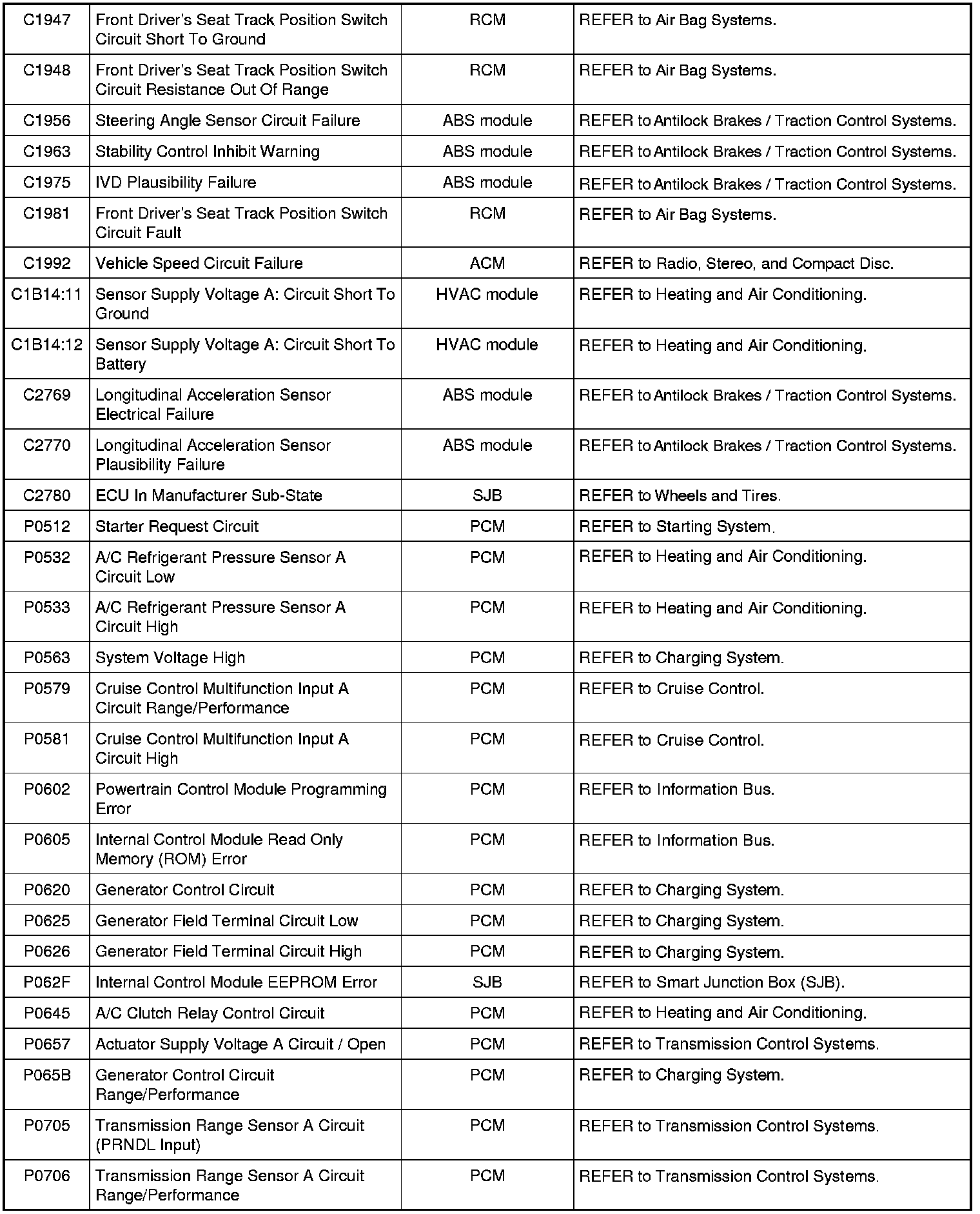 NOTE: Most powertrain (P-code) DTCs are diagnosed in Computers and Control Systems Information. If the P-code retrieved is not listed below, refer to Computers and Control Systems Information to continue diagnostics.