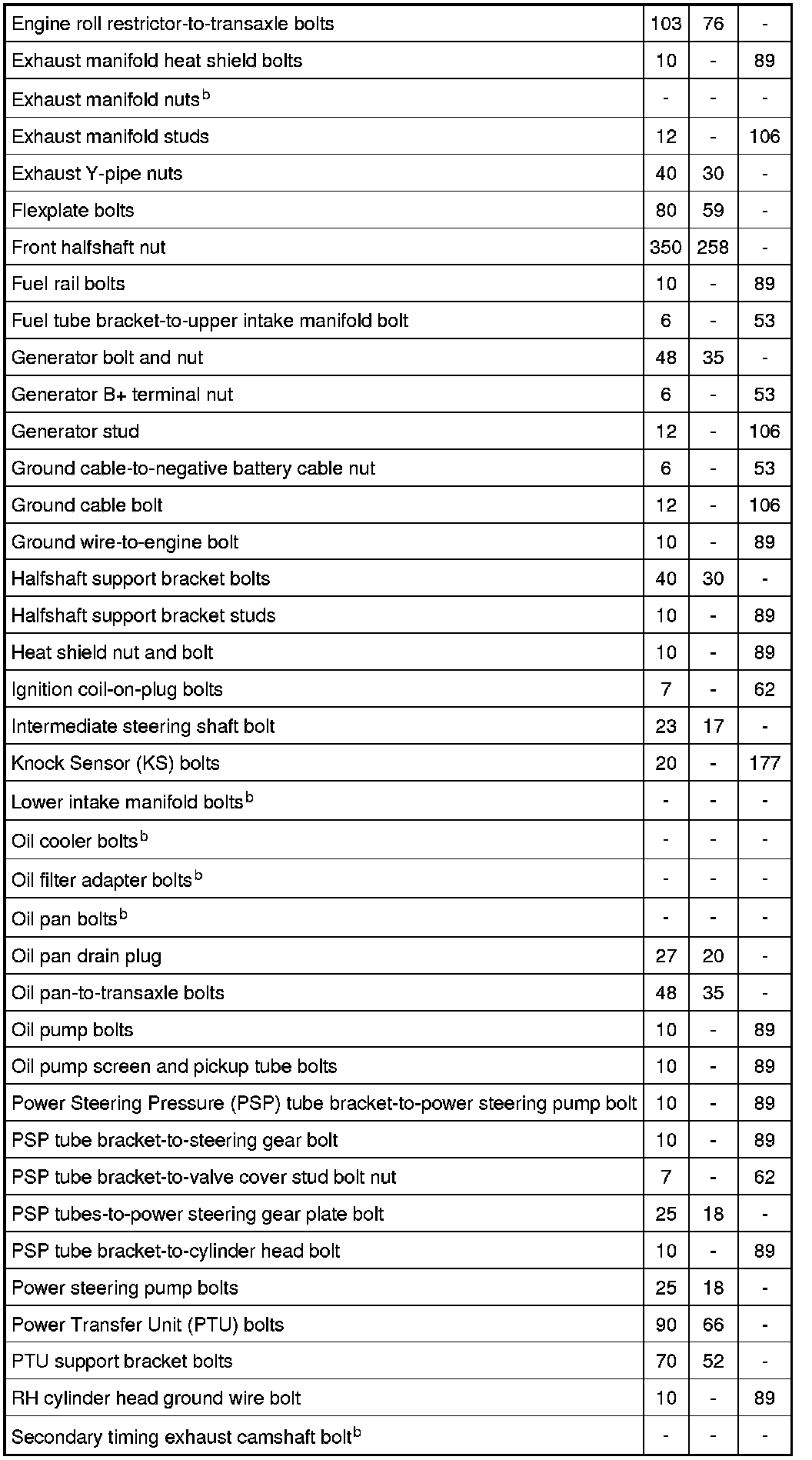 Torque Specifications