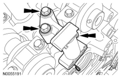 Install the RH primary timing chain guide and the 2 bolts.Tighten to 10 Nm (89 lb-in).