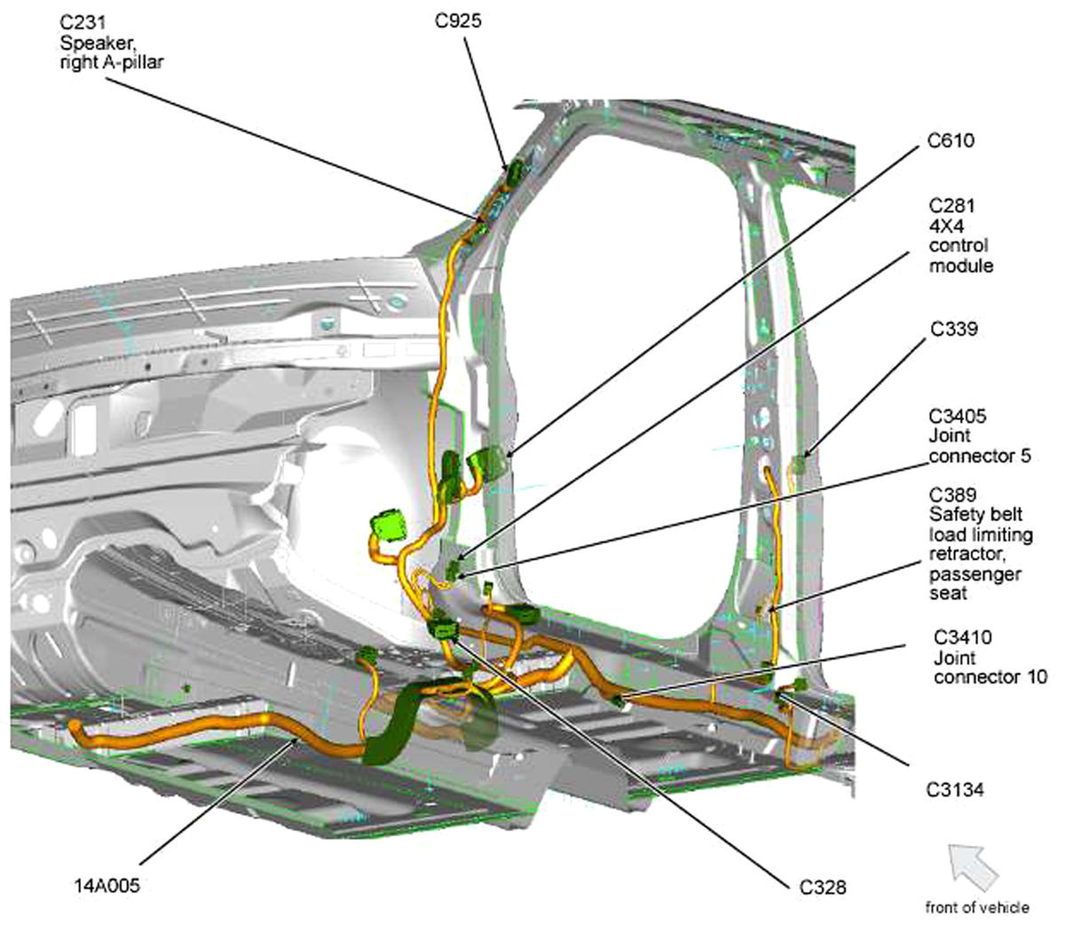 Parking Aid Module (PAM) Right "C" pillar. See Figure.