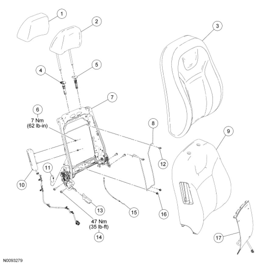 NOTE: LH seat with 4-way seat track shown, 2-way similar. For RH seat cushion Occupant Classification Sensor (OCS) system components, refer to Air Bag Systems.