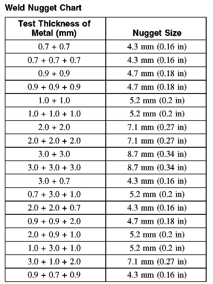Weld Nugget Chart:
