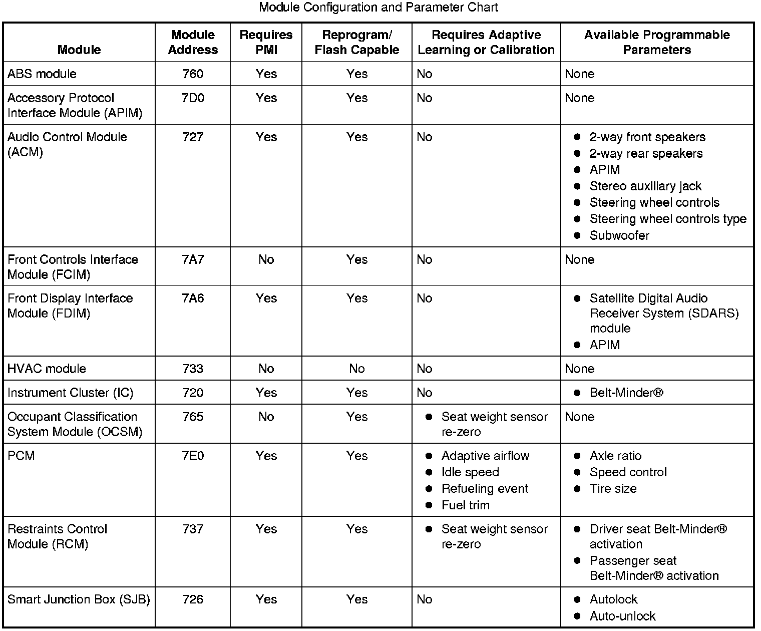 Programmable parameters are customer preference items that may be modified by the dealer via scan tool or in some cases, modified by the customer following a procedure listed in the vehicle Owner's Literature. While many configuration options may exist for a module, only a few of these options are programmable parameters.