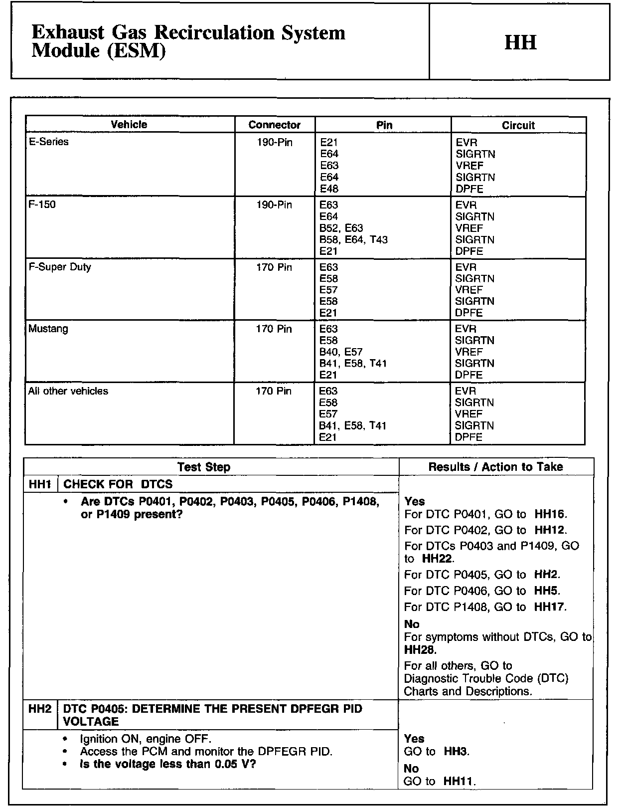 Home >> Ford >> 2009 >> Focus L4-2.0L >> Repair and Diagnosis >> Powertrain Management >> Computers and Control Systems >> Testing and Inspection >> Pinpoint Tests >> HH - Exhaust Gas Recirculation System Module (ESM)