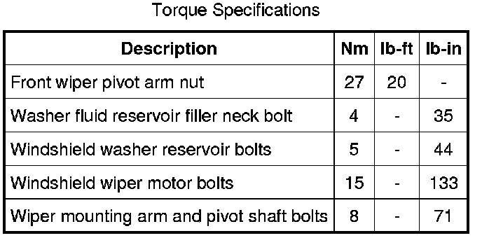 Torque Specifications