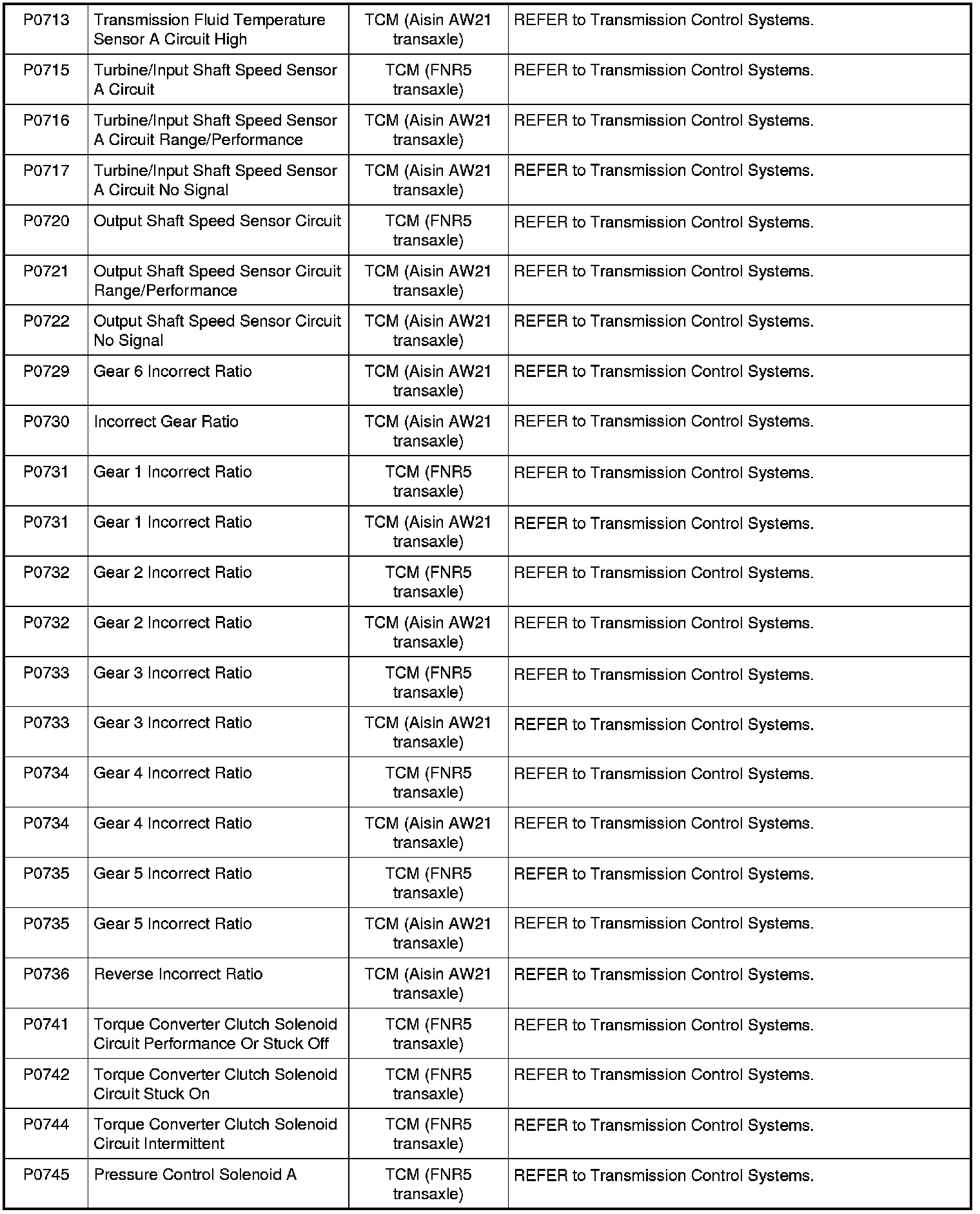 NOTE: Most powertrain (P-code) DTCs are diagnosed in Computers and Control Systems Information. If the P-code retrieved is not listed below, refer to Computers and Control Systems Information to continue diagnostics.