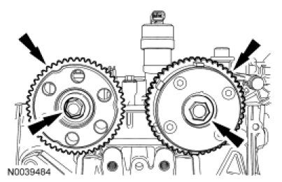 Install the camshaft sprockets and the bolts.