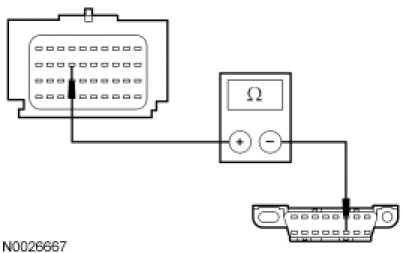 - Measure the resistance between the RCM C310b-18, circuit VDB04 (WH/BU), harness side and the Data Link Connector (DLC) C251-6, circuit VDB04 (WH/BU), harness side.