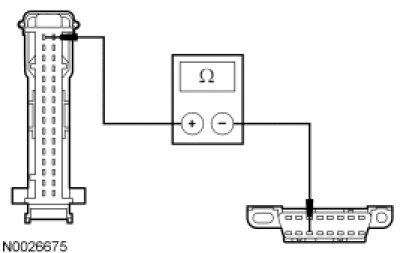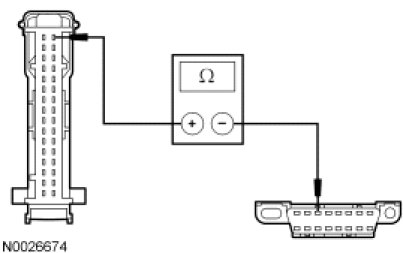- Measure the resistance between the SJB C2280d-1, circuit VDB07 (VT/OG), harness side and the DLC C251-11, circuit VDB07 (VT/OG), harness side.