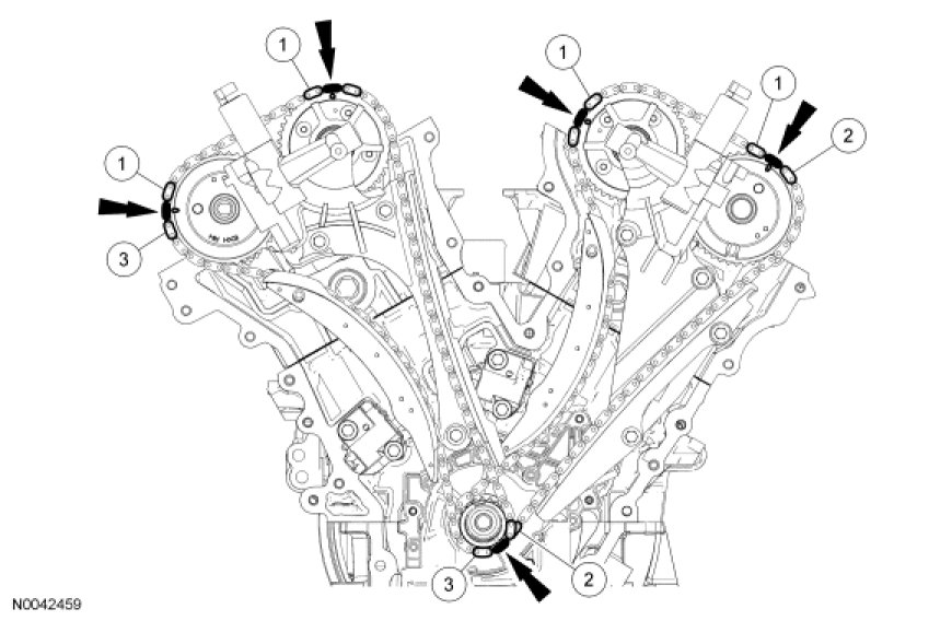 If timing marks in the timing chains are not evident, use a permanent-type marker to mark the crankshaft and camshaft timing marks on the LH and RH timing chains.
