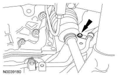 16. NOTICE: When the lower ball joint is separated from the wheel knuckle, the lower arm may strike the outer constant velocity (CV) joint boot with enough force to damage the boot clamp. This will result in a loss of grease from the outer CV joint. Place a block of wood, or similar item, between the lower arm and the outer CV joint to prevent the lower arm from striking the outer CV joint.