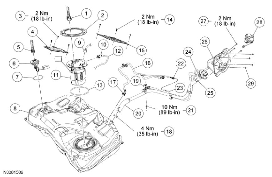 Fuel Tank and Filler Pipe - Exploded View