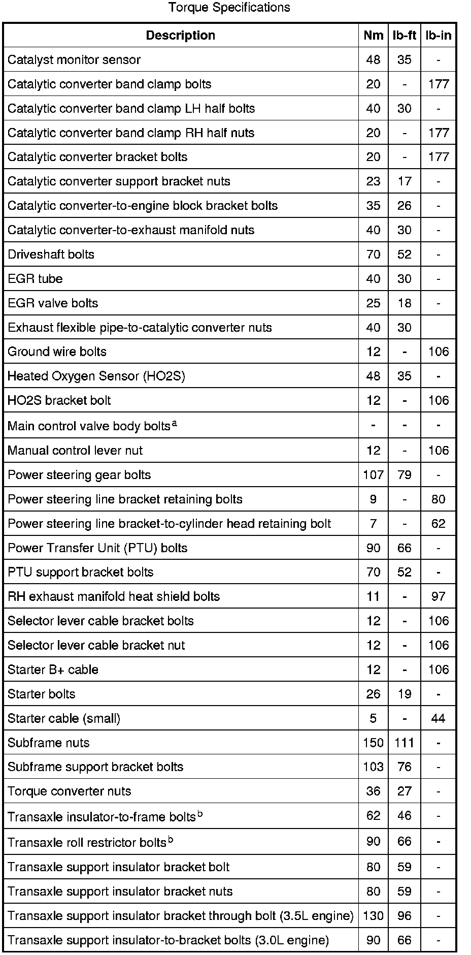 Torque Specifications