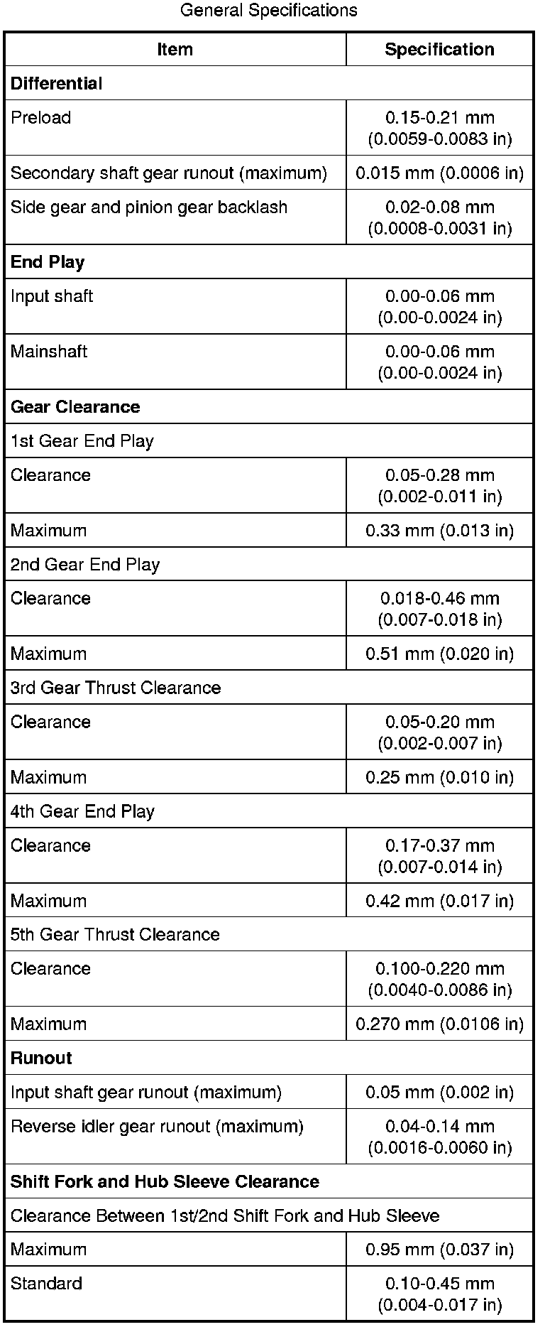 General Specifications