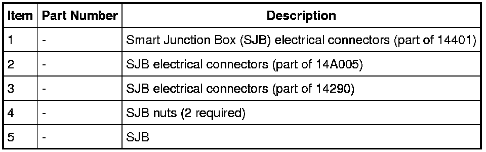 NOTE: A new SJB is delivered in a "manufacturing mode" with 7 pre-set DTCs. In order to clear the 7 pre-set manufacturing mode DTCs, the following must occur: