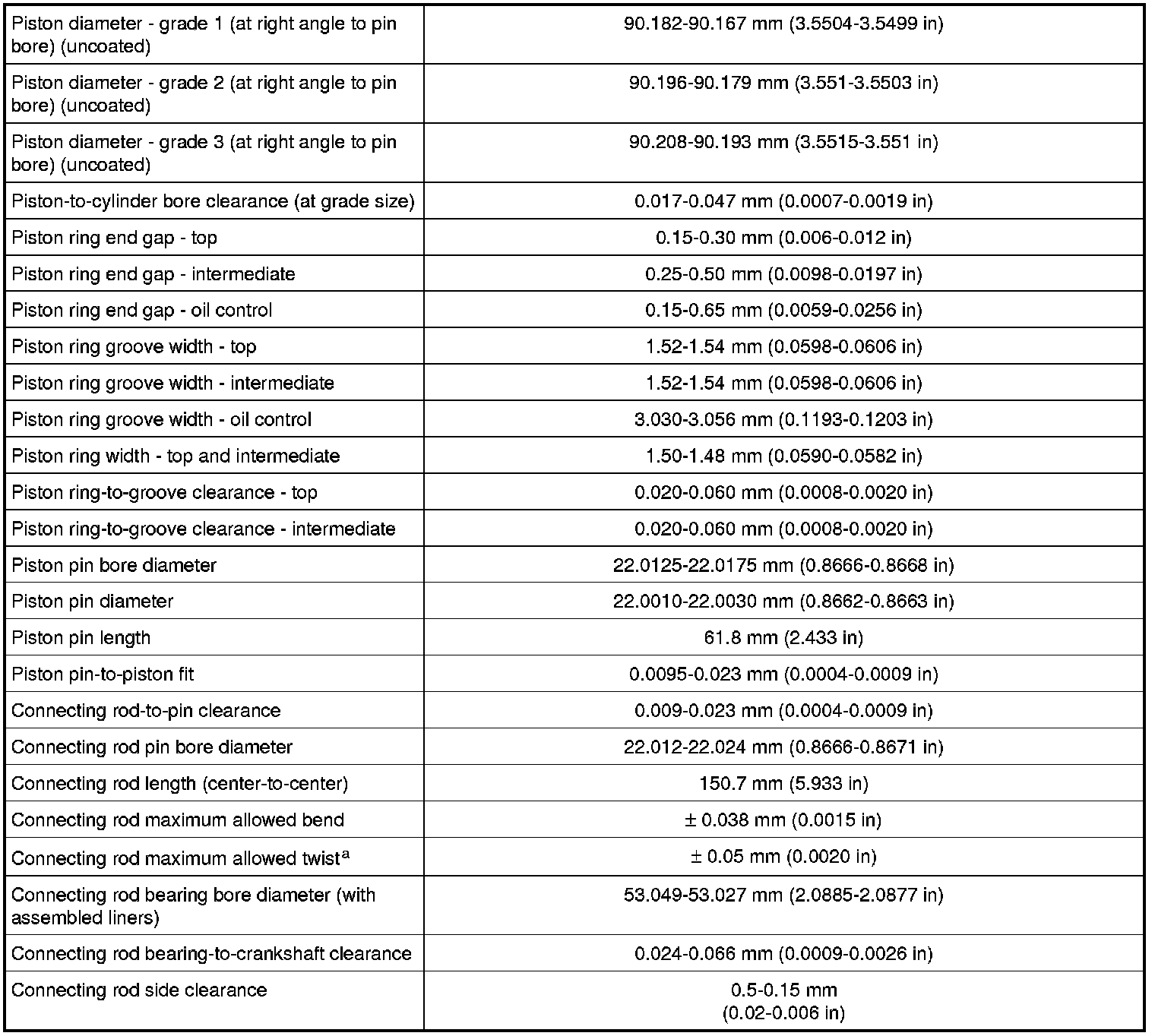 a The pin bore and crank bearing bore must be parallel and in the same vertical plane within the specified total difference when measured at the ends of a 203 mm bar, 105.5 mm on each side of rod centerline.