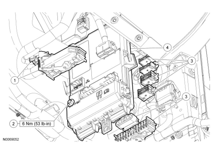 NOTE: Prior to the removal of the module, it is necessary to upload the module configuration information to a scan tool. This information must be downloaded into the new Smart Junction Box (SJB) after installation.