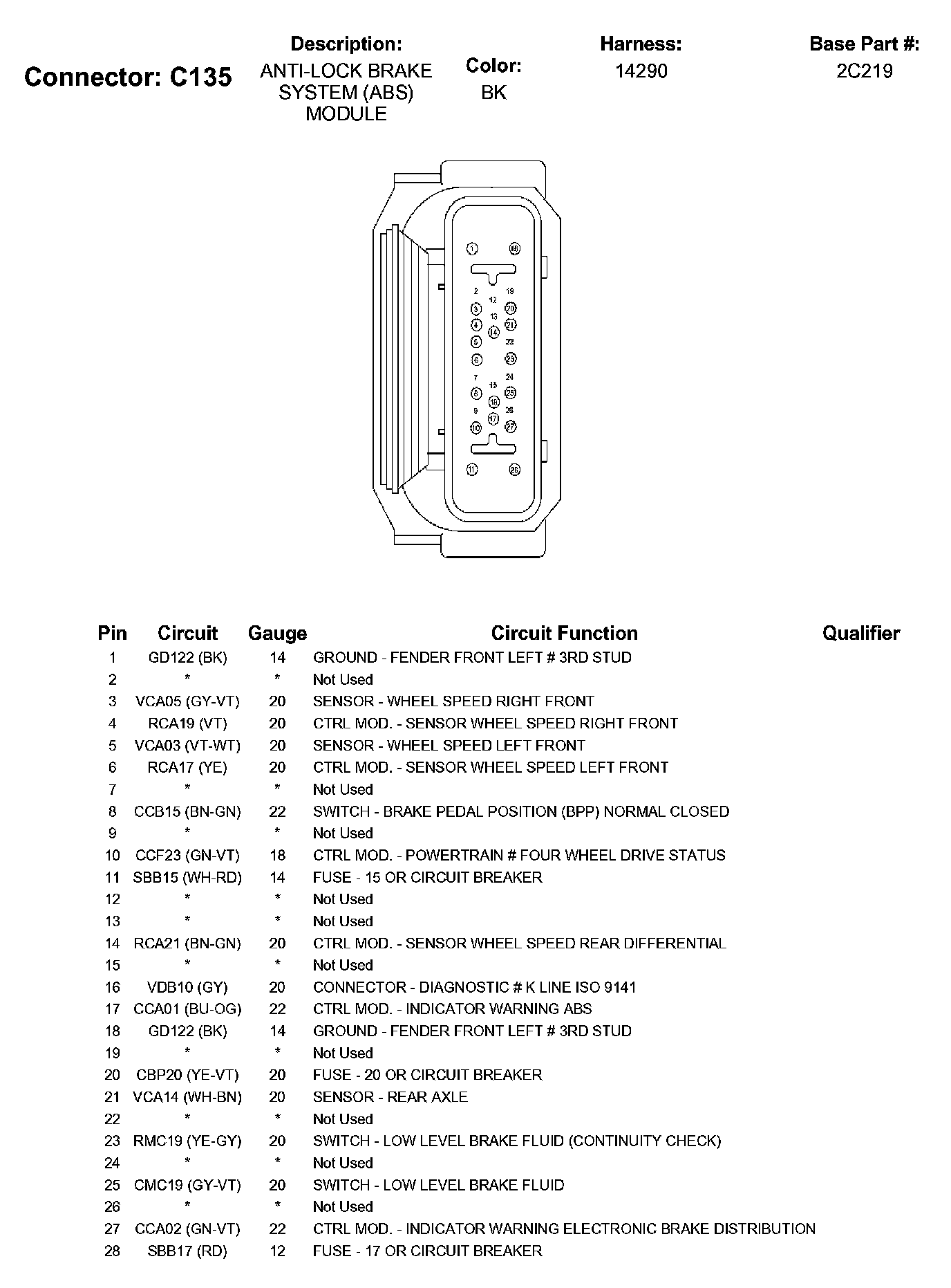 Home >> Ford >> 2009 >> Ranger 2WD L4-2.3L >> Repair and Diagnosis >> Diagrams >> Connector Views >> Electronic Brake Control Module