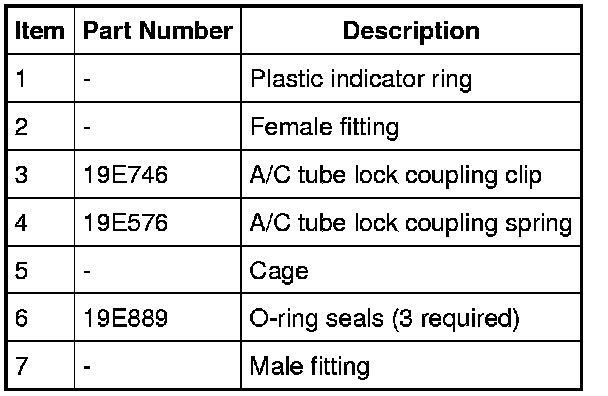 - An A/C tube lock coupling clip is used to secure the coupling and is required.