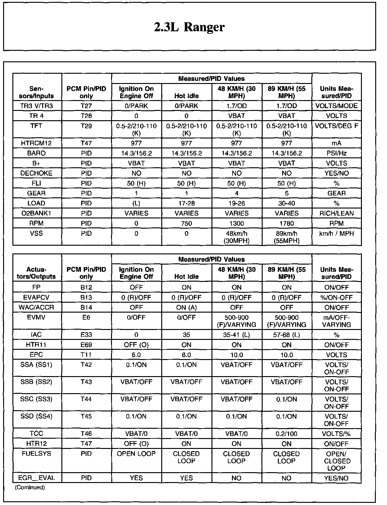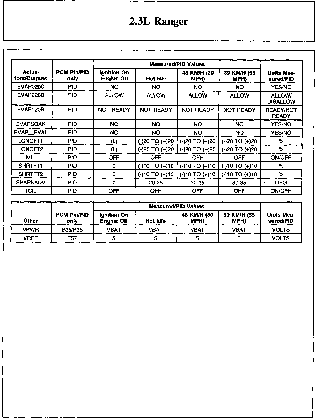 Home >> Ford >> 2009 >> Ranger 2WD L4-2.3L >> Repair and Diagnosis >> Powertrain Management >> Computers and Control Systems >> Testing and Inspection >> Scan Tool Testing and Procedures >> Typical Diagnostic Reference Values