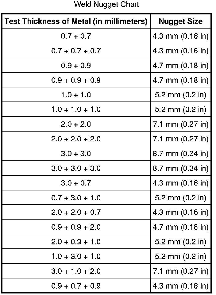 Weld Nugget Chart: