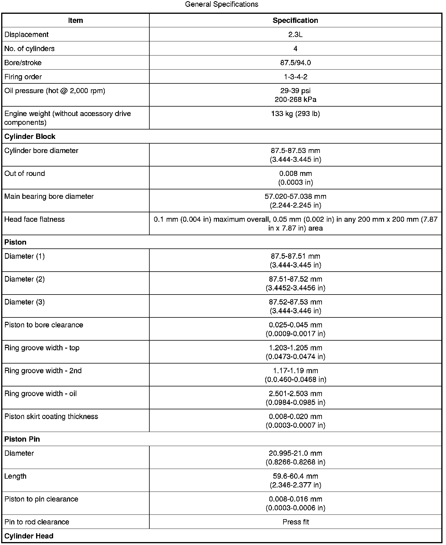 Home >> Ford >> 2009 >> Ranger 2WD L4-2.3L >> Repair and Diagnosis >> Specifications >> Mechanical Specifications >> Engine >> System Specifications >> General Specifications