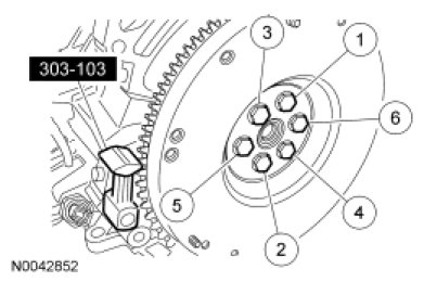 Locking Tool, install the 6 bolts in the sequence shown, in 3 stages.