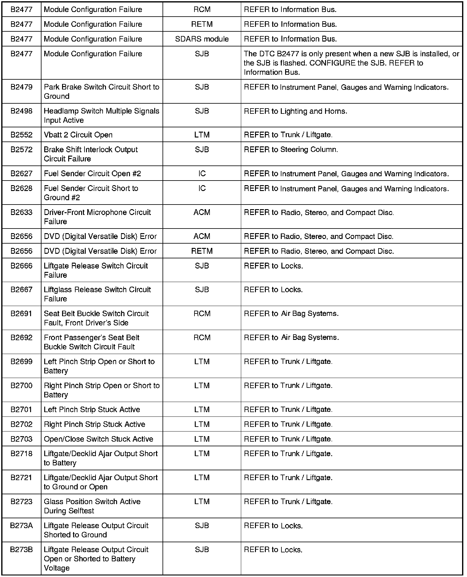 NOTE: Most powertrain (P-code) DTCs are diagnosed in Computers and Control Systems Information. If the P-code retrieved is not listed below, refer to Computers and Control Systems Information to continue diagnostics.
