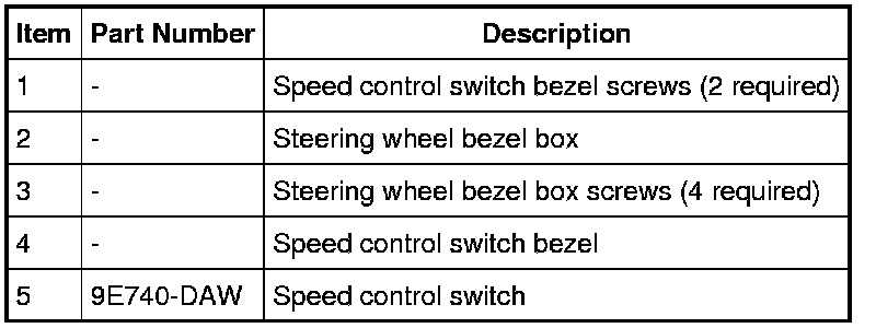 NOTE: The speed control switch is unique to the adaptive cruise control system. When installing a new speed control switch, make sure the correct switch for adaptive cruise control is installed.