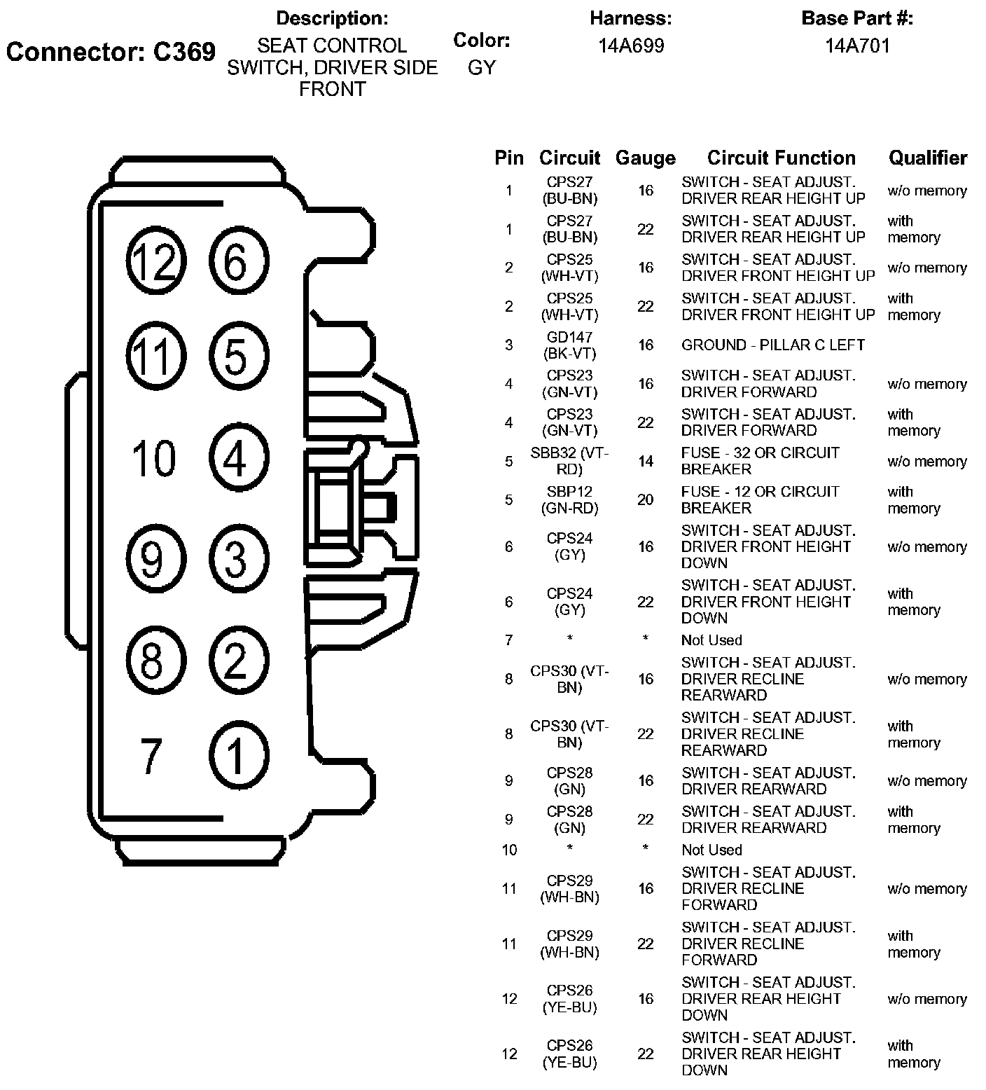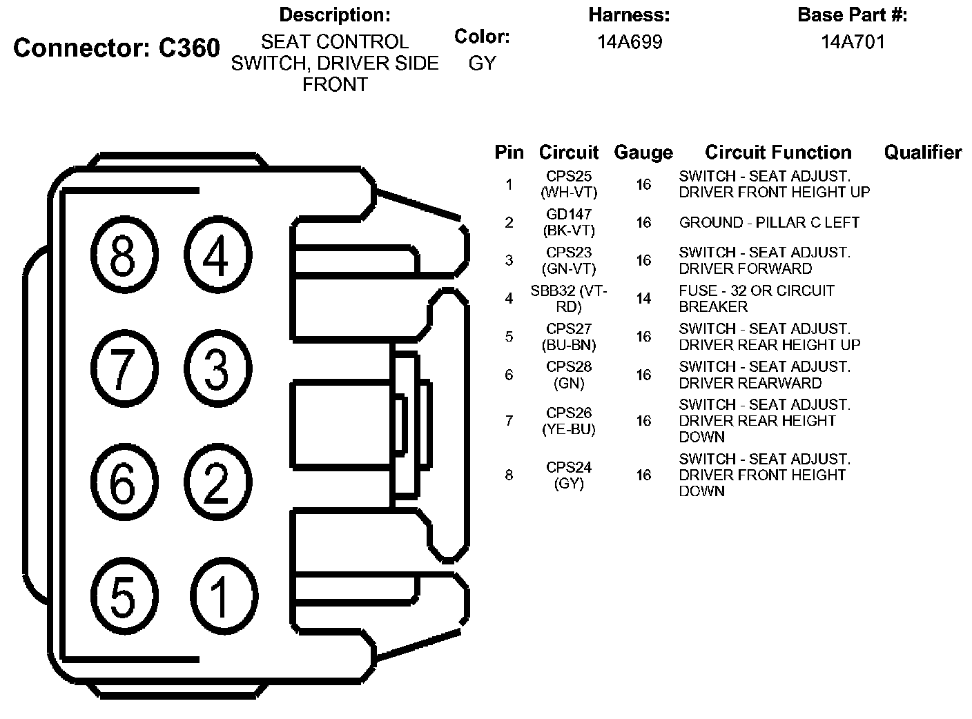 Seat Control Switch, Driver Side Front