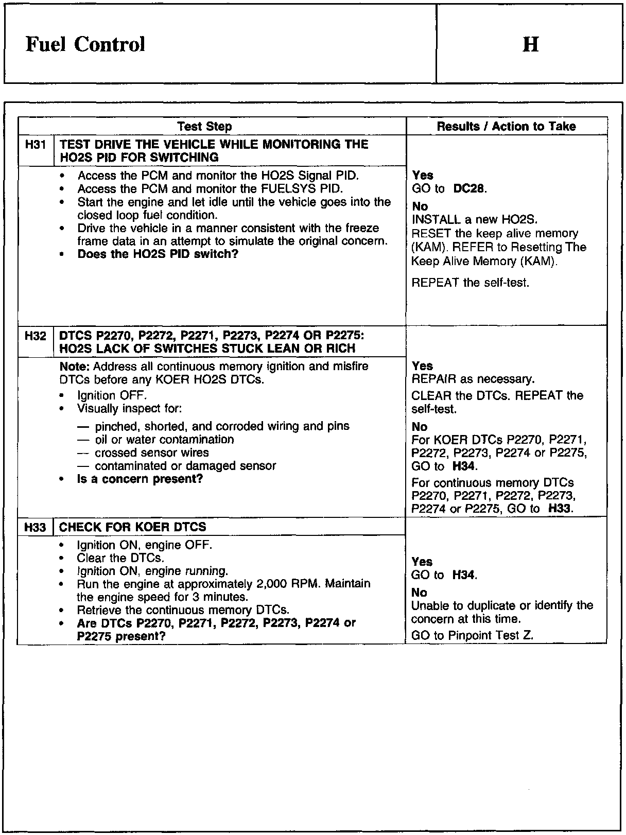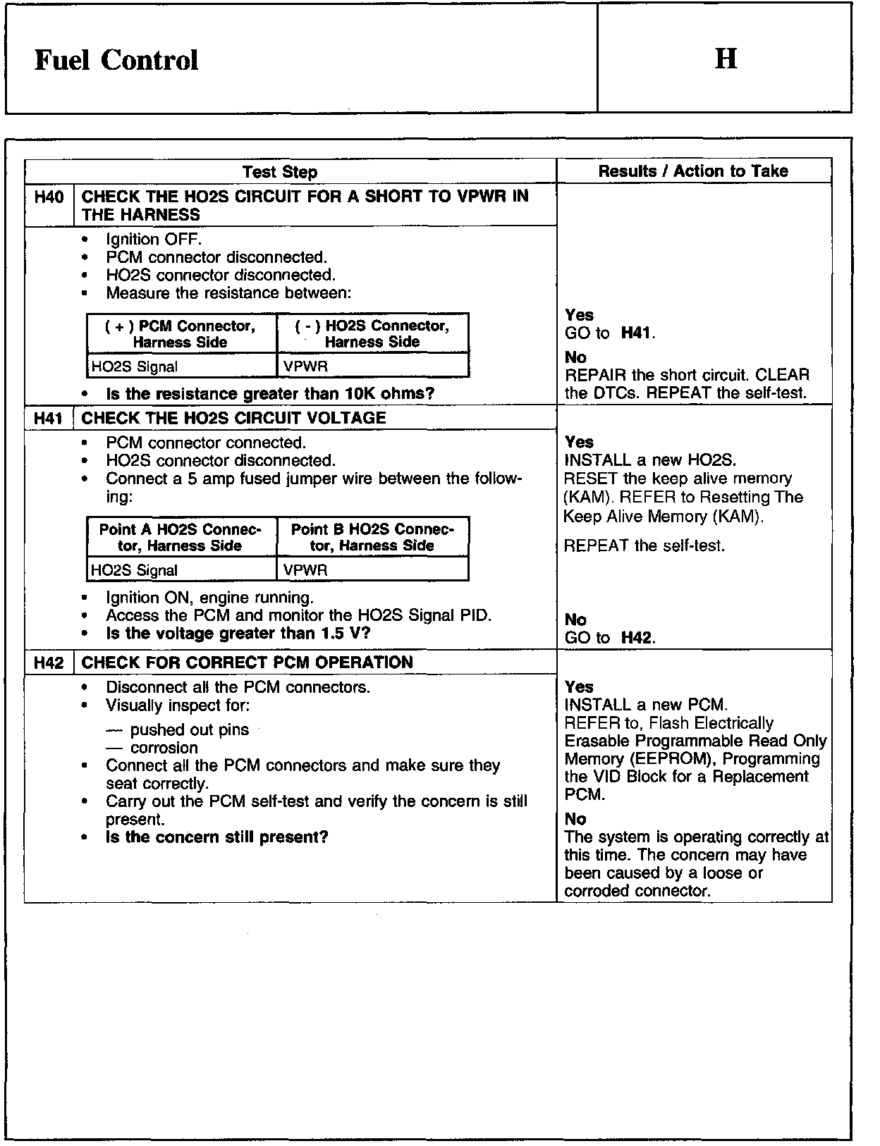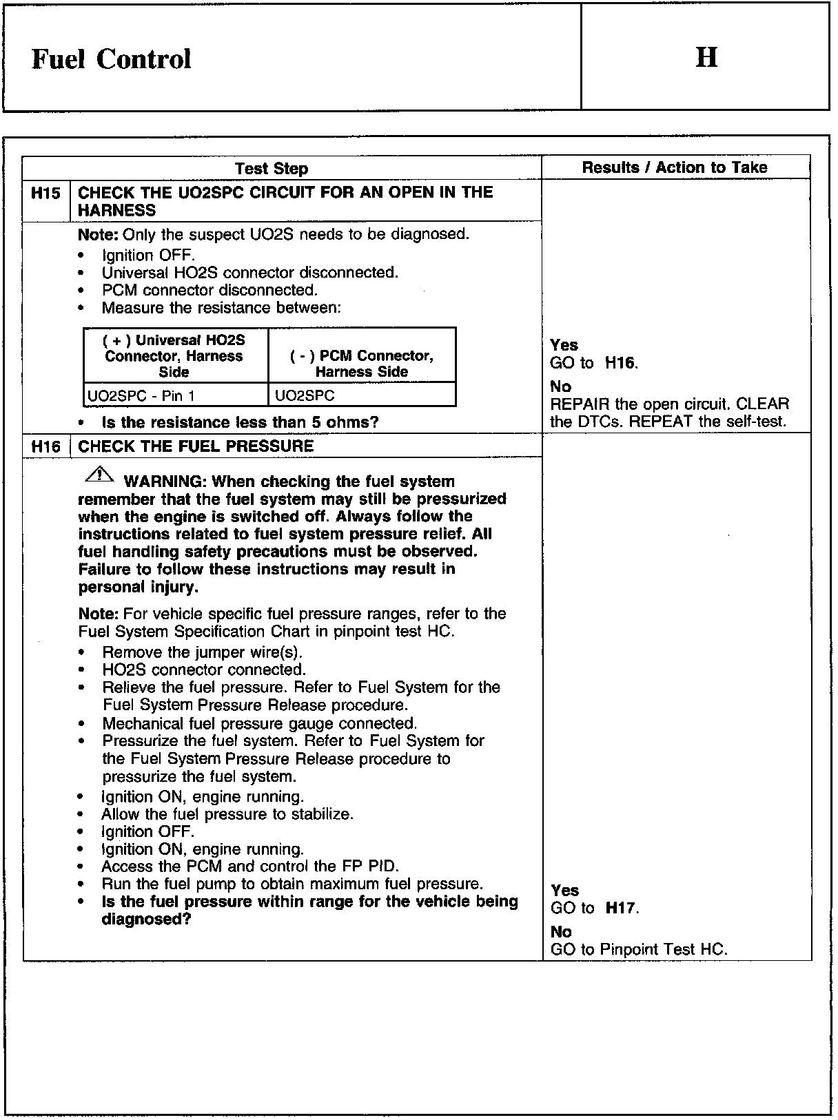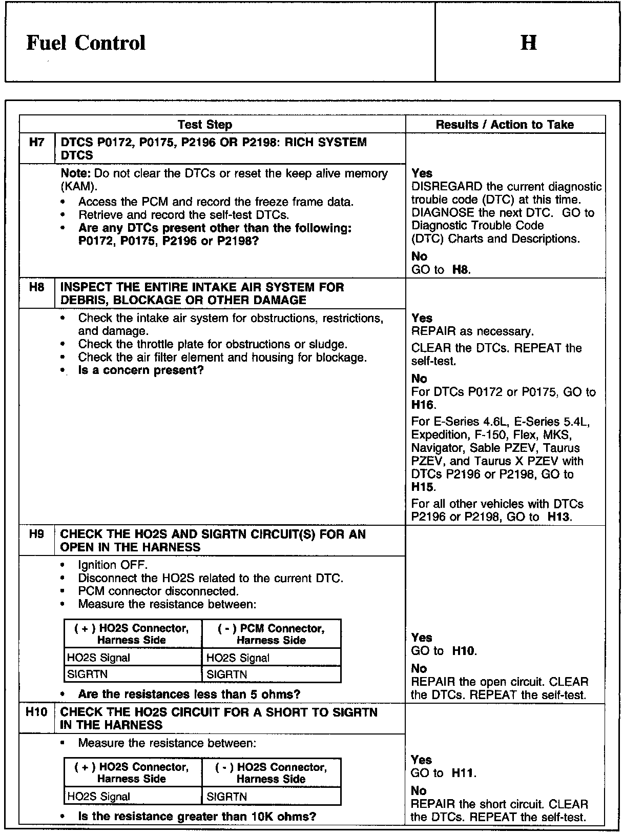 Home >> Ford >> 2009 >> Taurus AWD V6-3.5L >> Repair and Diagnosis >> Powertrain Management >> Computers and Control Systems >> Testing and Inspection >> Pinpoint Tests >> H - Fuel Control
