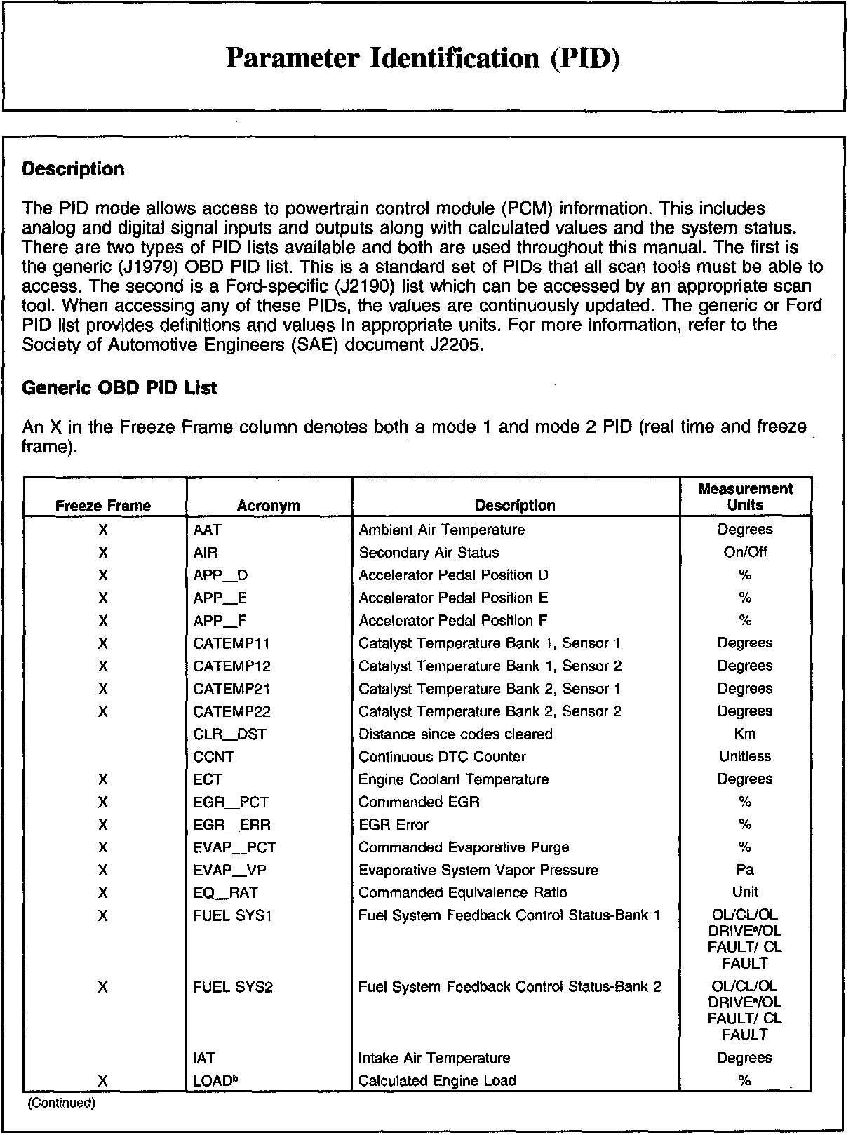 Home >> Ford >> 2009 >> Taurus FWD V6-3.5L >> Repair and Diagnosis >> Powertrain Management >> Computers and Control Systems >> Testing and Inspection >> Scan Tool Testing and Procedures >> Parameter Identification (PID)