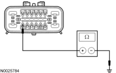 - Measure the resistance between the FSSM C3281a-7, circuit 1203 (BK/LB), harness side and ground.
