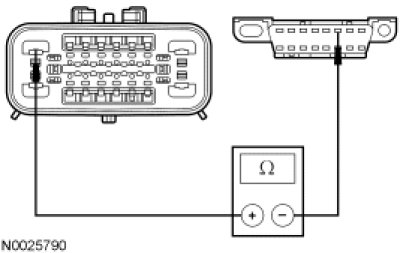 - Measure the resistance between the FSSM C3281a-16, circuit 1827 (WH/LG), harness side and the DLC C251-6, circuit 1827 (WH/LG), harness side.