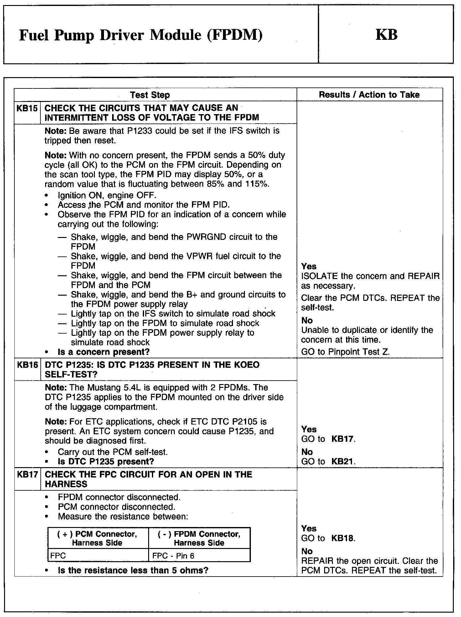 Test KB: Fuel Pump Driver Module (FPDM)