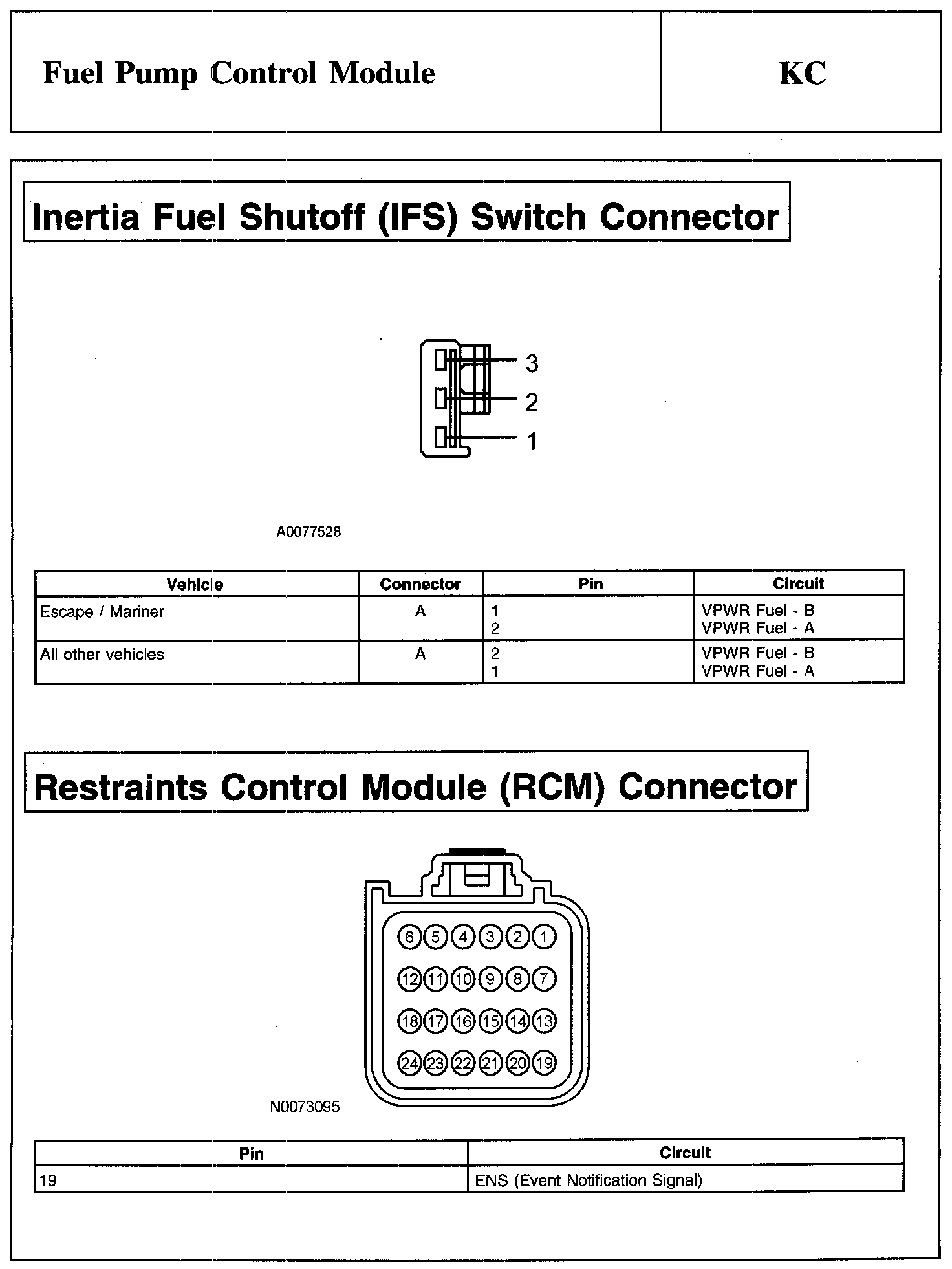 Inertia Fuel Shutoff (IFS) Switch Connector And Restraints Control Module (RCM) Connector: