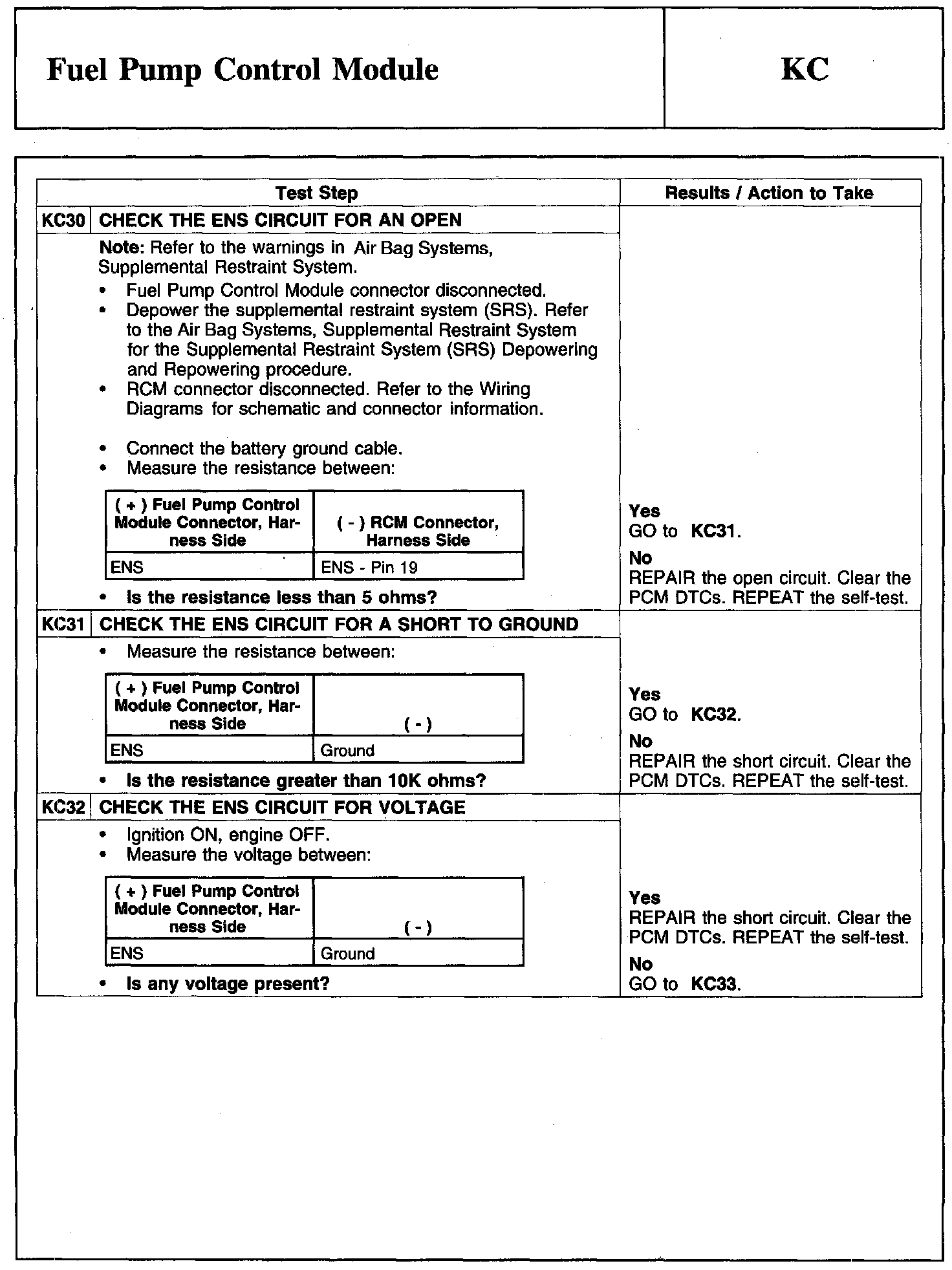 PINPOINT TEST KC: FUEL PUMP CONTROL MODULE