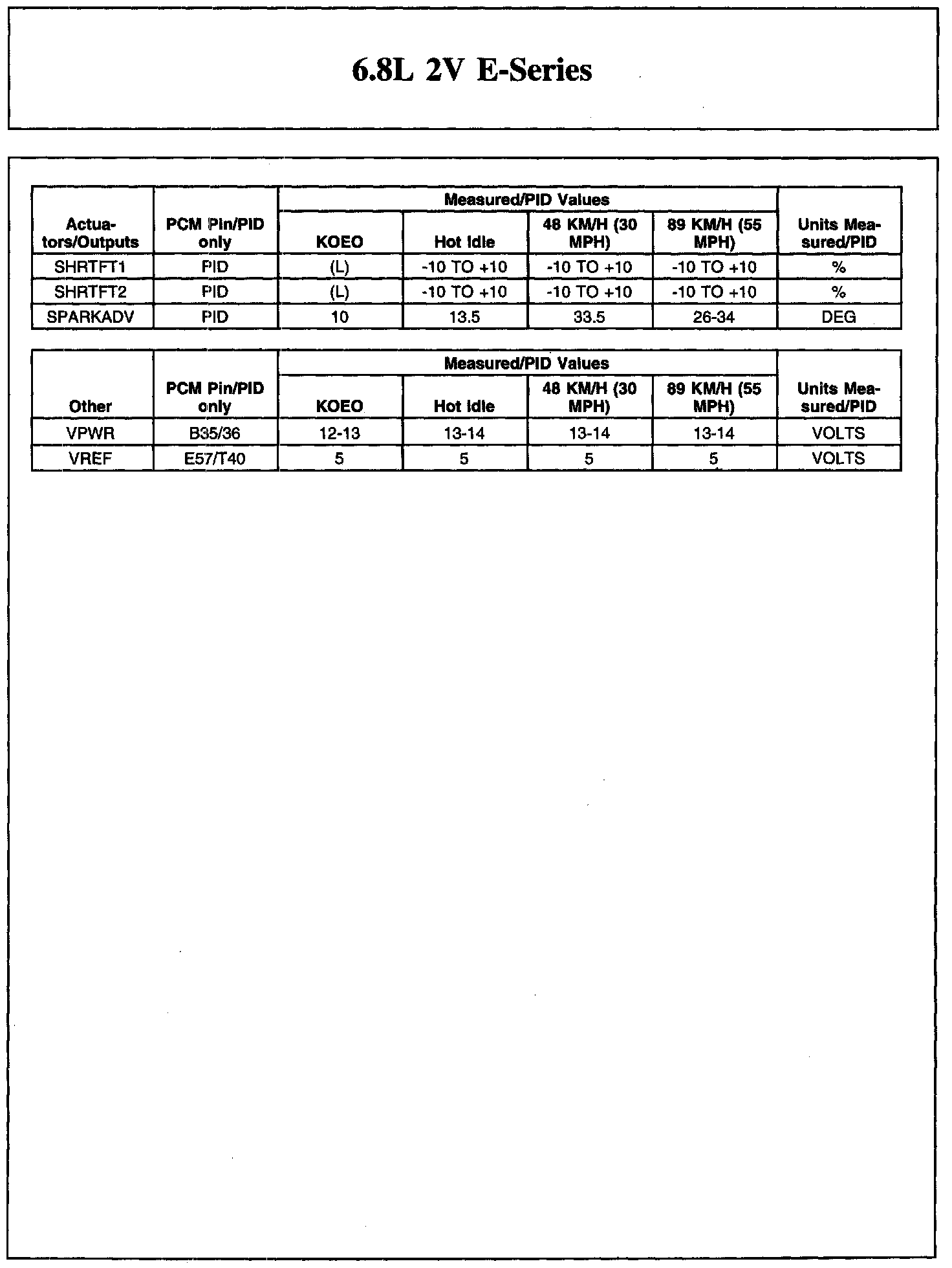 The Typical Diagnostic Reference Value Charts do not display fault parameter identifications (PIDs). These are PIDs which indicate a hard fault with the circuit. They display a value of YES or NO and are PIDs ending with the letter F.