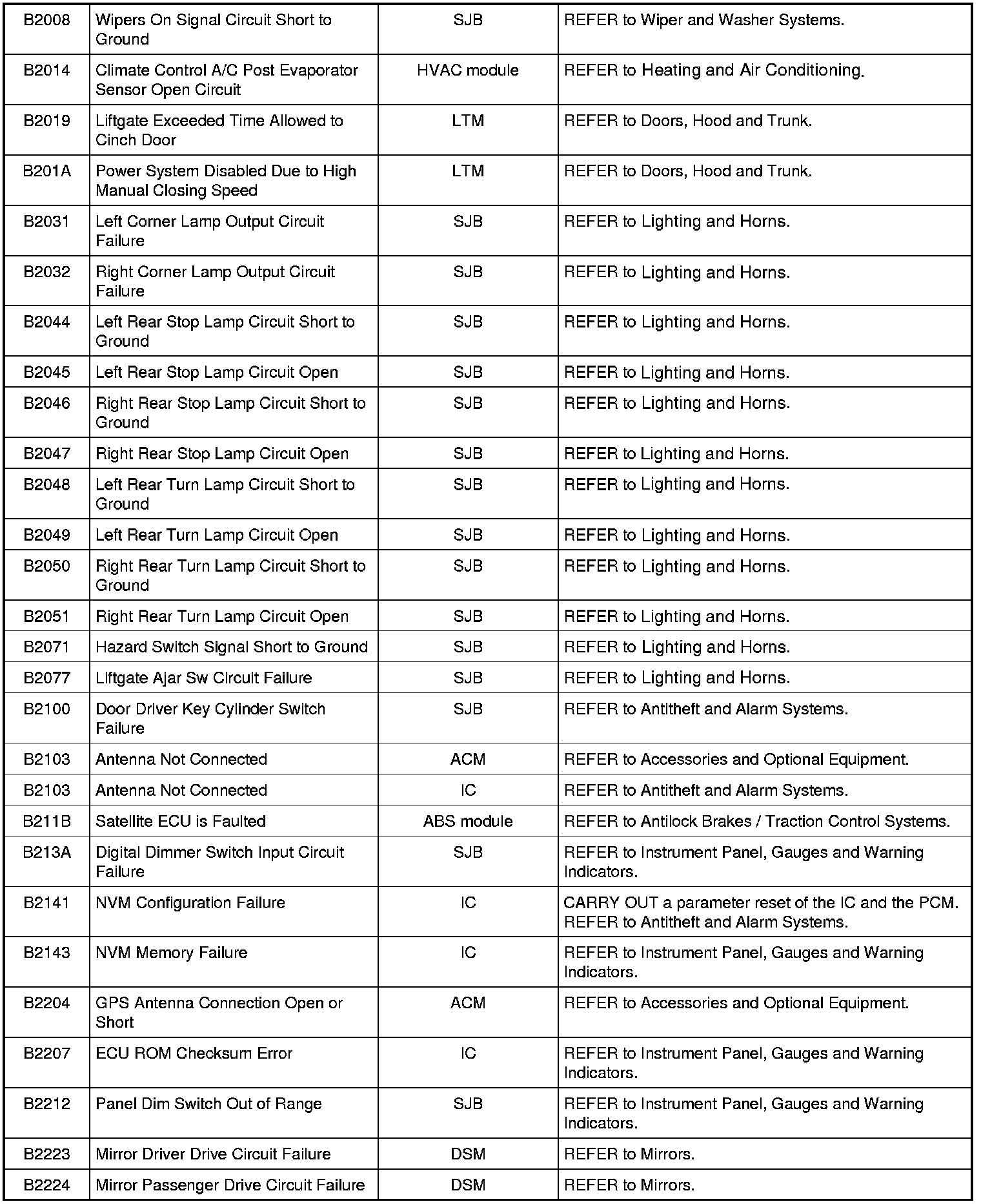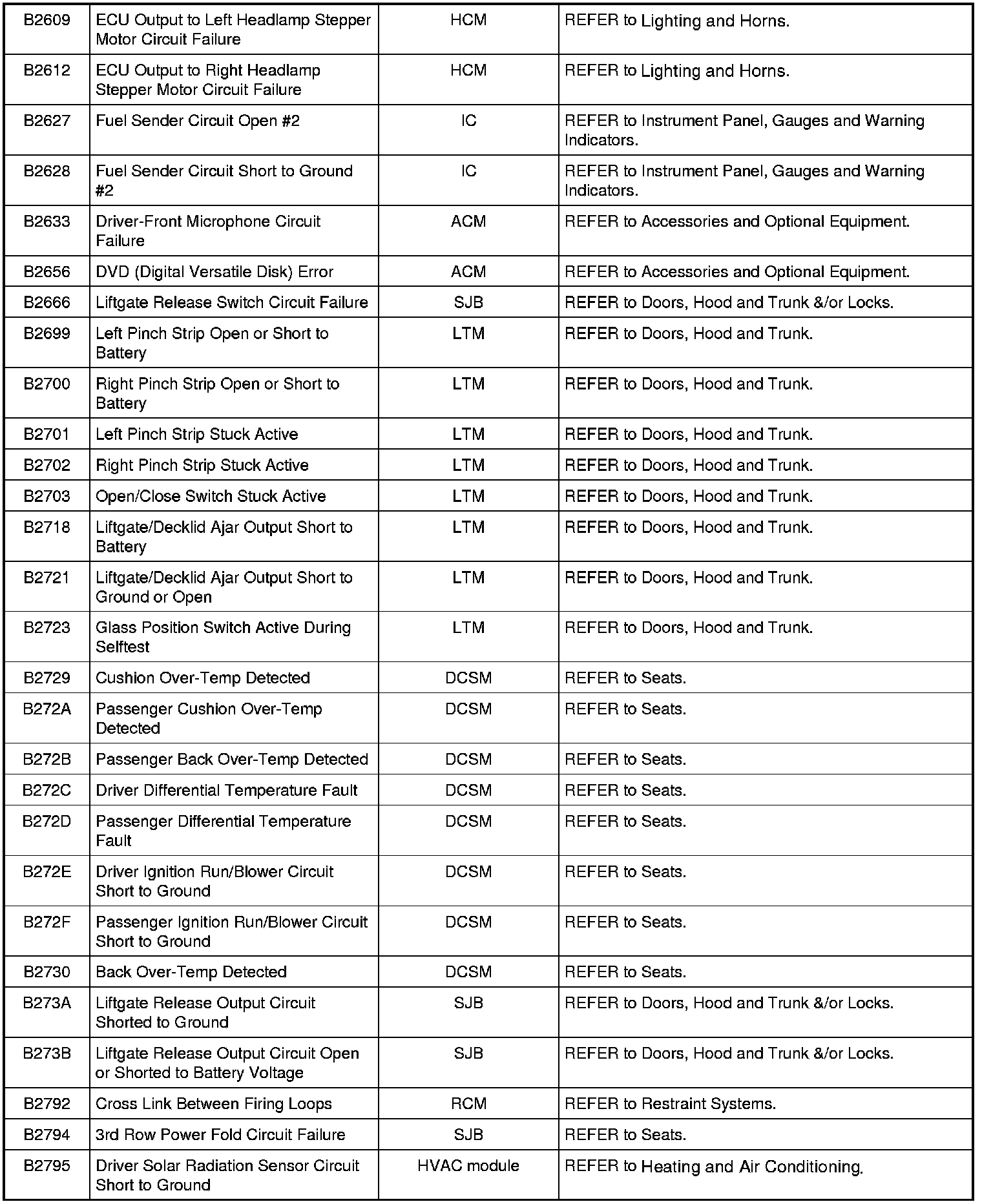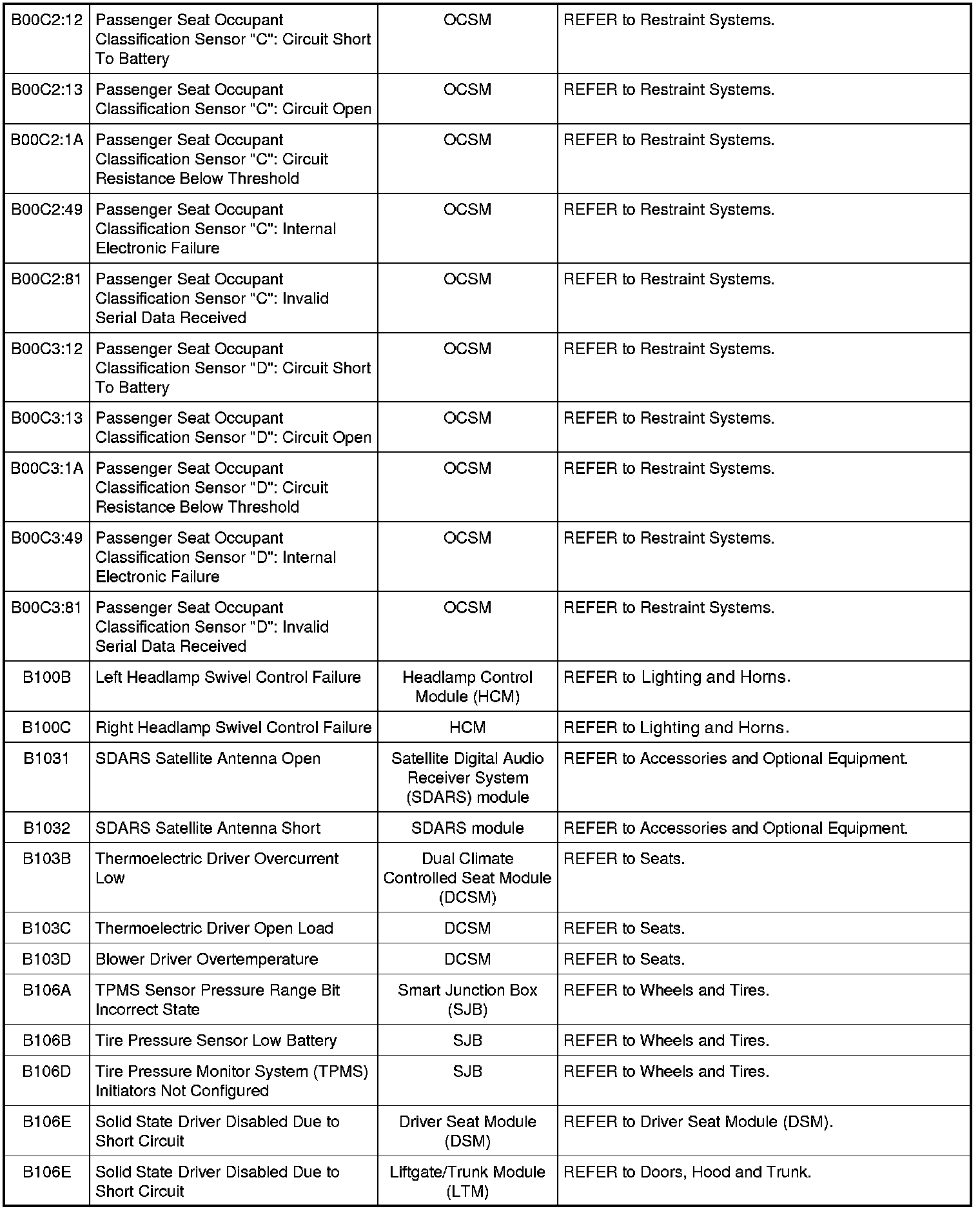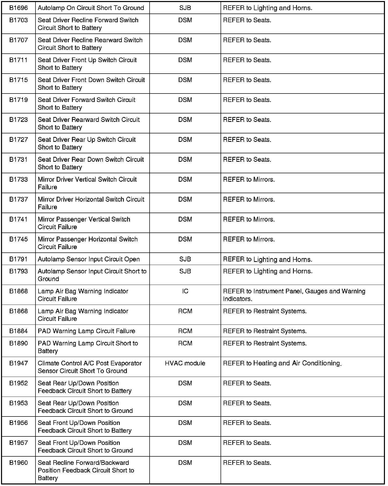 NOTE: Some of these modules utilize a 5-character DTC followed by a 2-character failure-type code. The failure-type code provides information about specific fault conditions such as opens, or shorts to ground. Continuous memory DTCs have an additional 2-character DTC status code suffix to assist in determining DTC history.