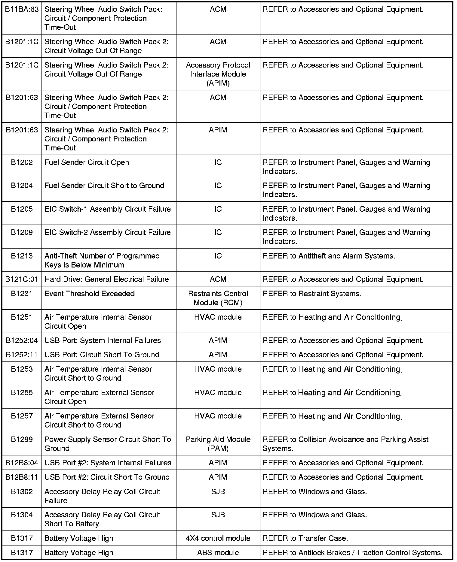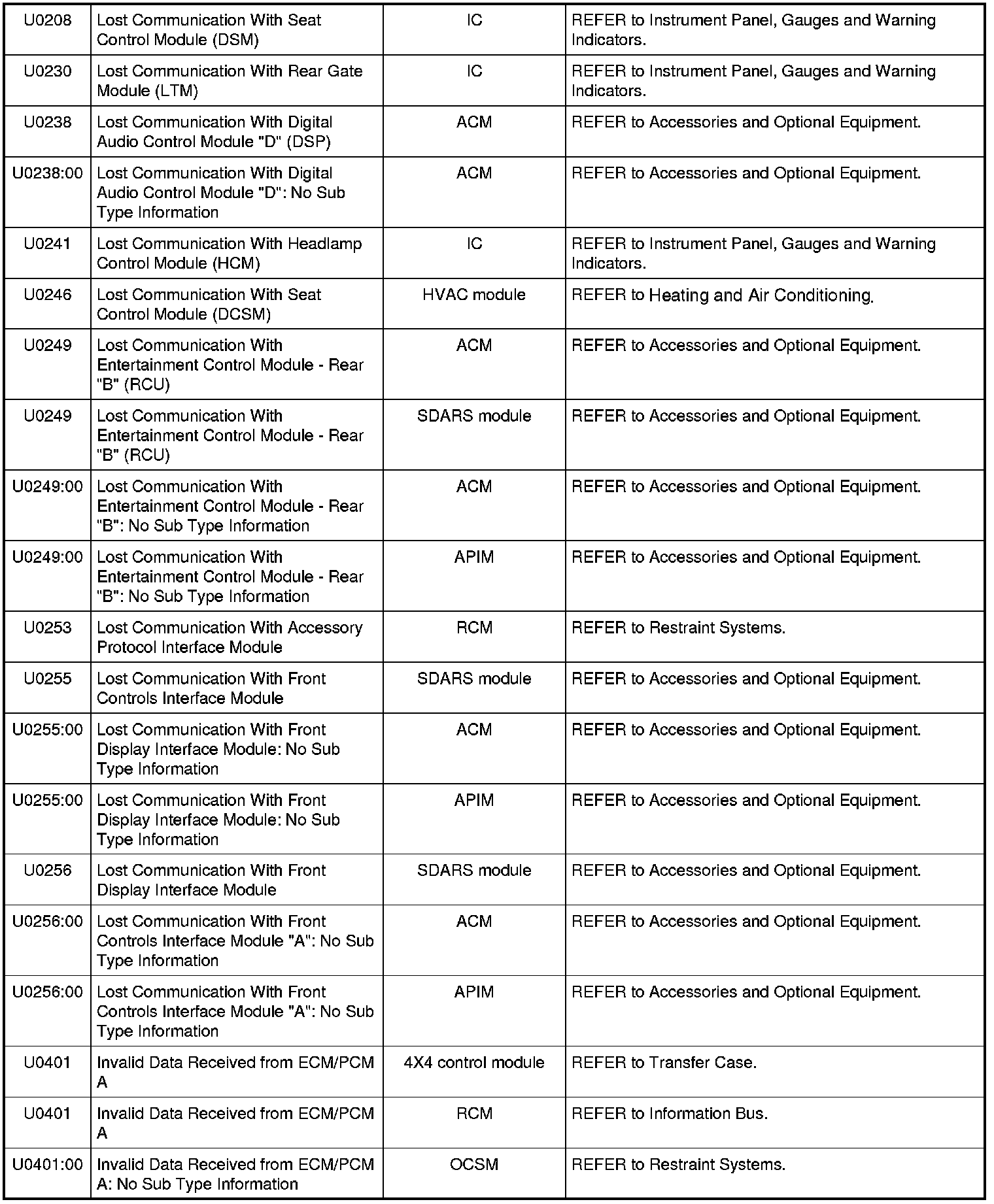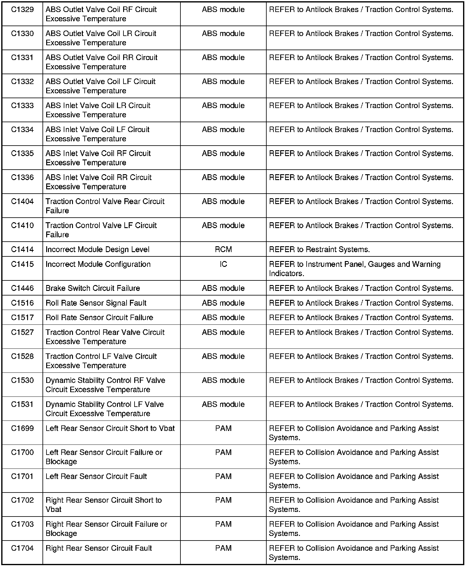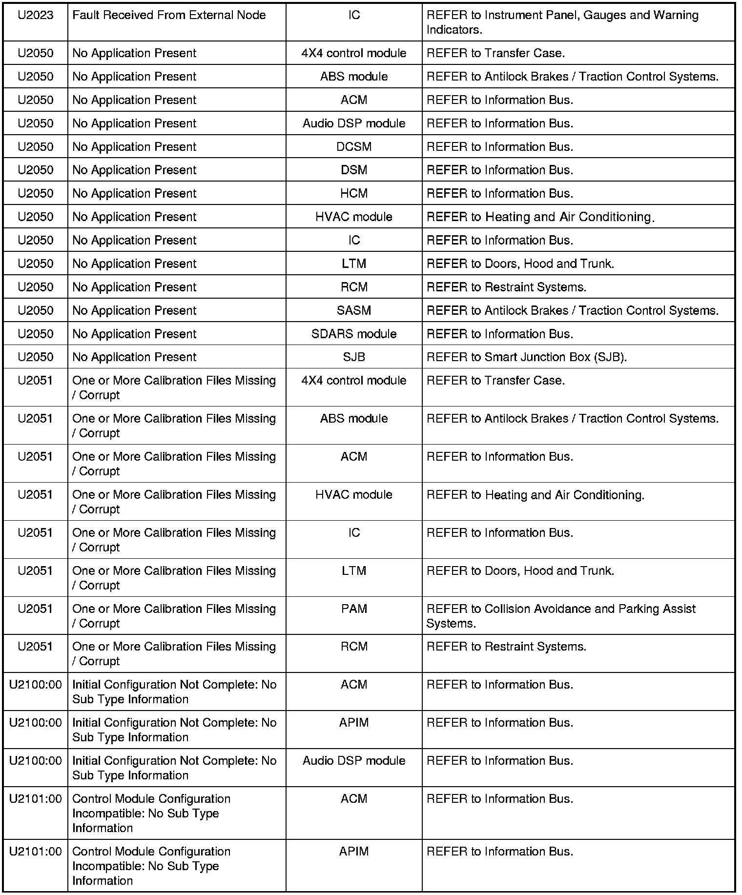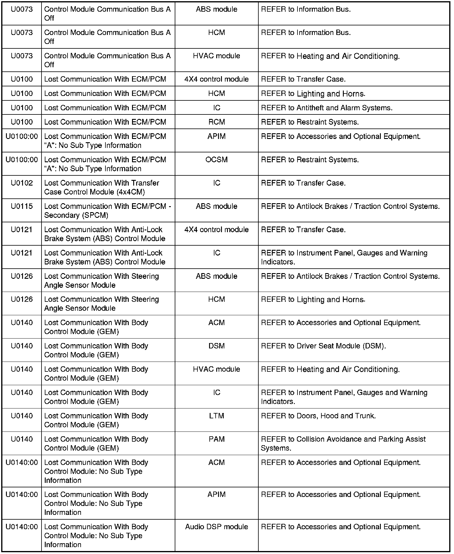 NOTE: Some of these modules utilize a 5-character DTC followed by a 2-character failure-type code. The failure-type code provides information about specific fault conditions such as opens, or shorts to ground. Continuous memory DTCs have an additional 2-character DTC status code suffix to assist in determining DTC history.