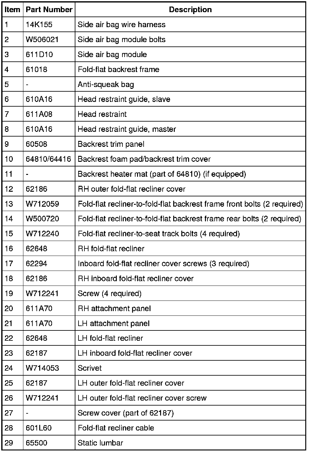 NOTE: To install a new Occupant Classification System Module (OCSM) or an Occupant Classification Sensor (OCS) weight sensor bolt, refer to the appropriate procedure in Restraint Systems.