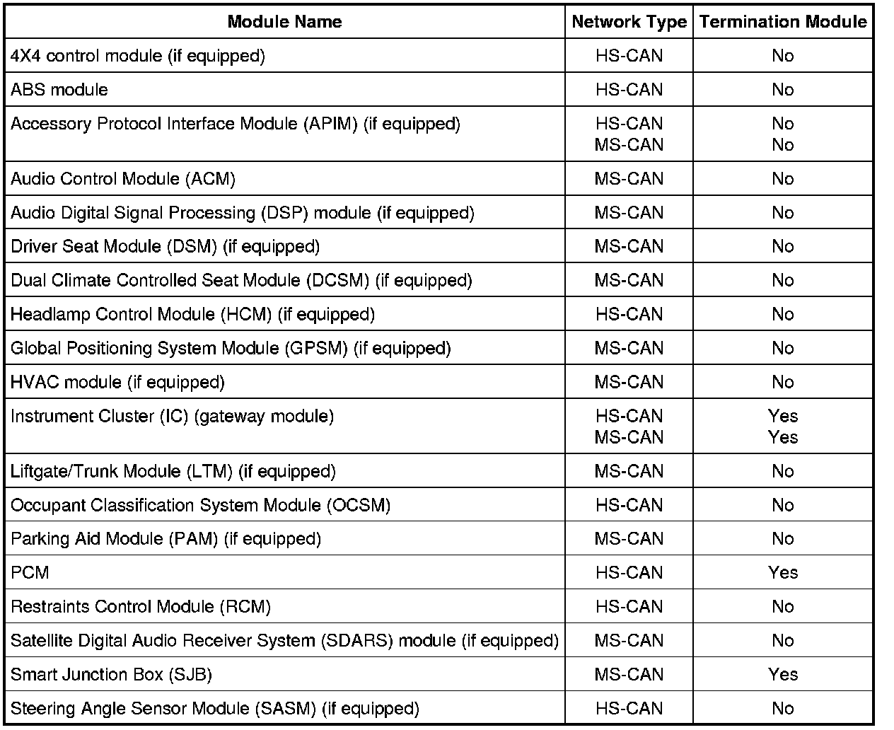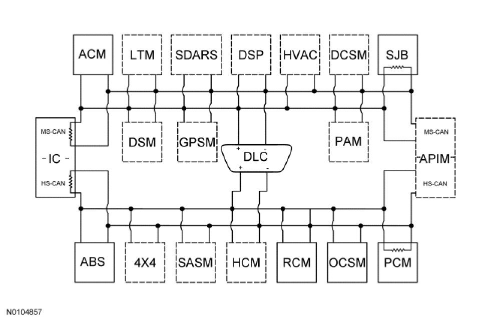 The Instrument Cluster (IC) is the gateway module, translating messages on the HS-CAN to the MS-CAN and vice versa. This allows a message to be distributed throughout both networks.