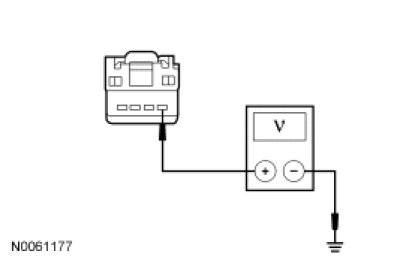 - Measure the voltage between the SASM C222-1, circuit CBP34 (VT/BN), harness side and ground.