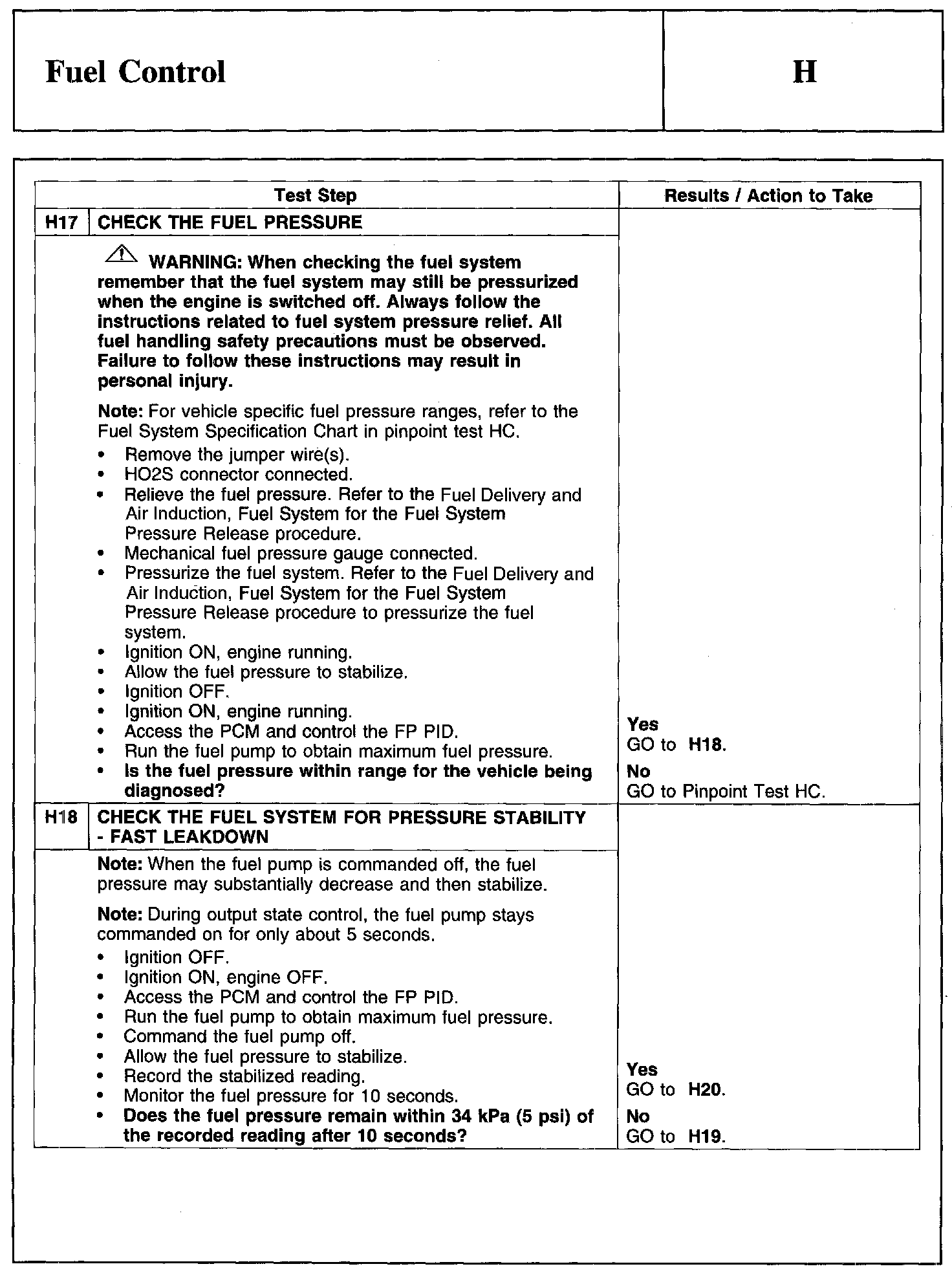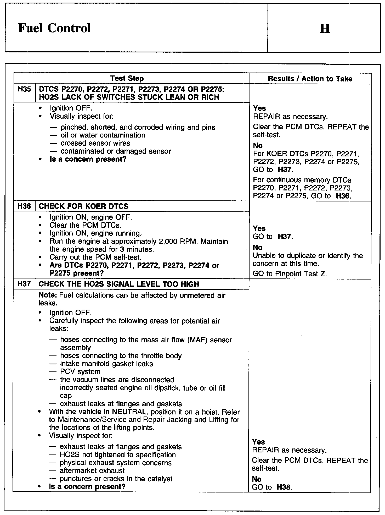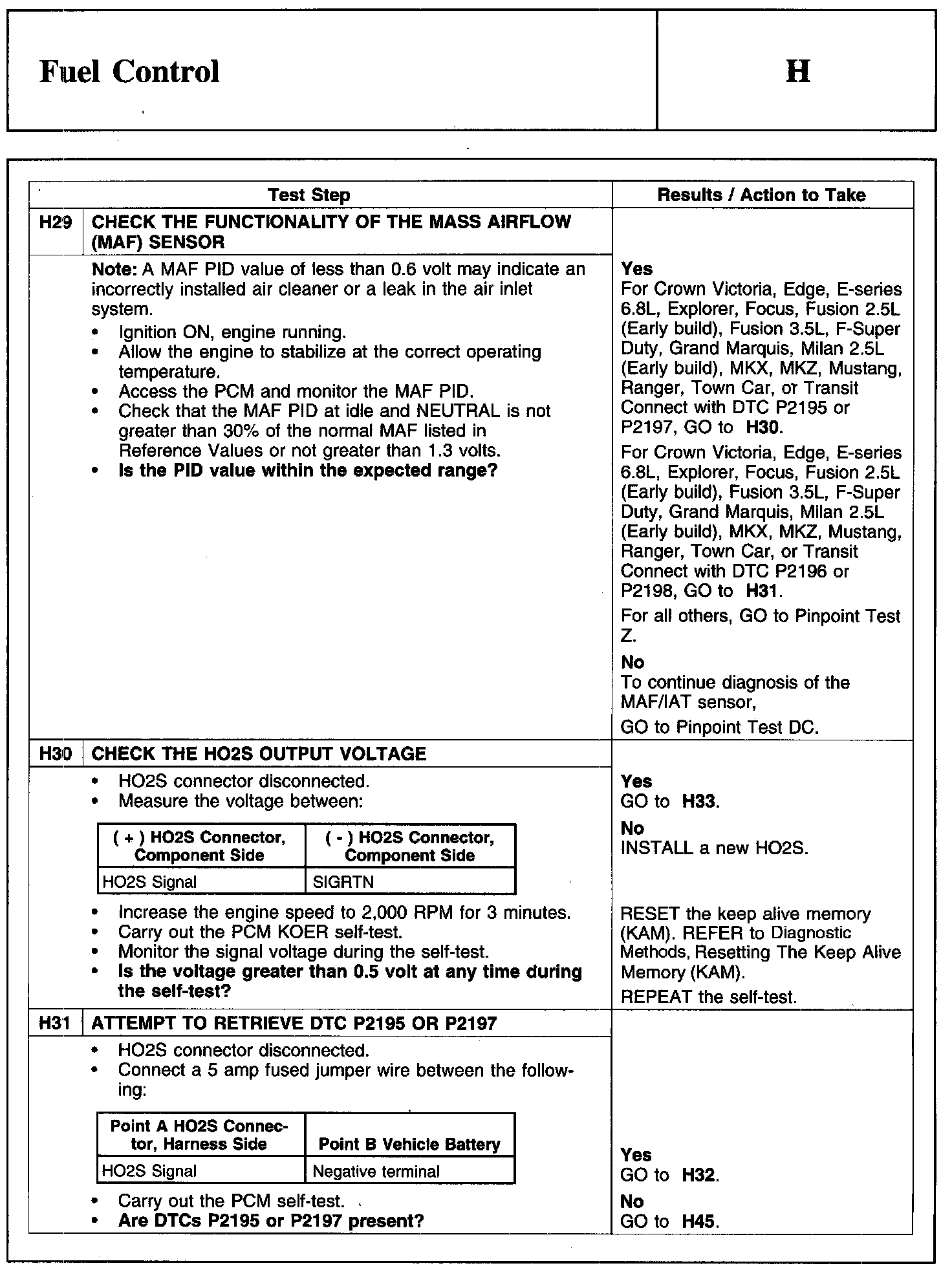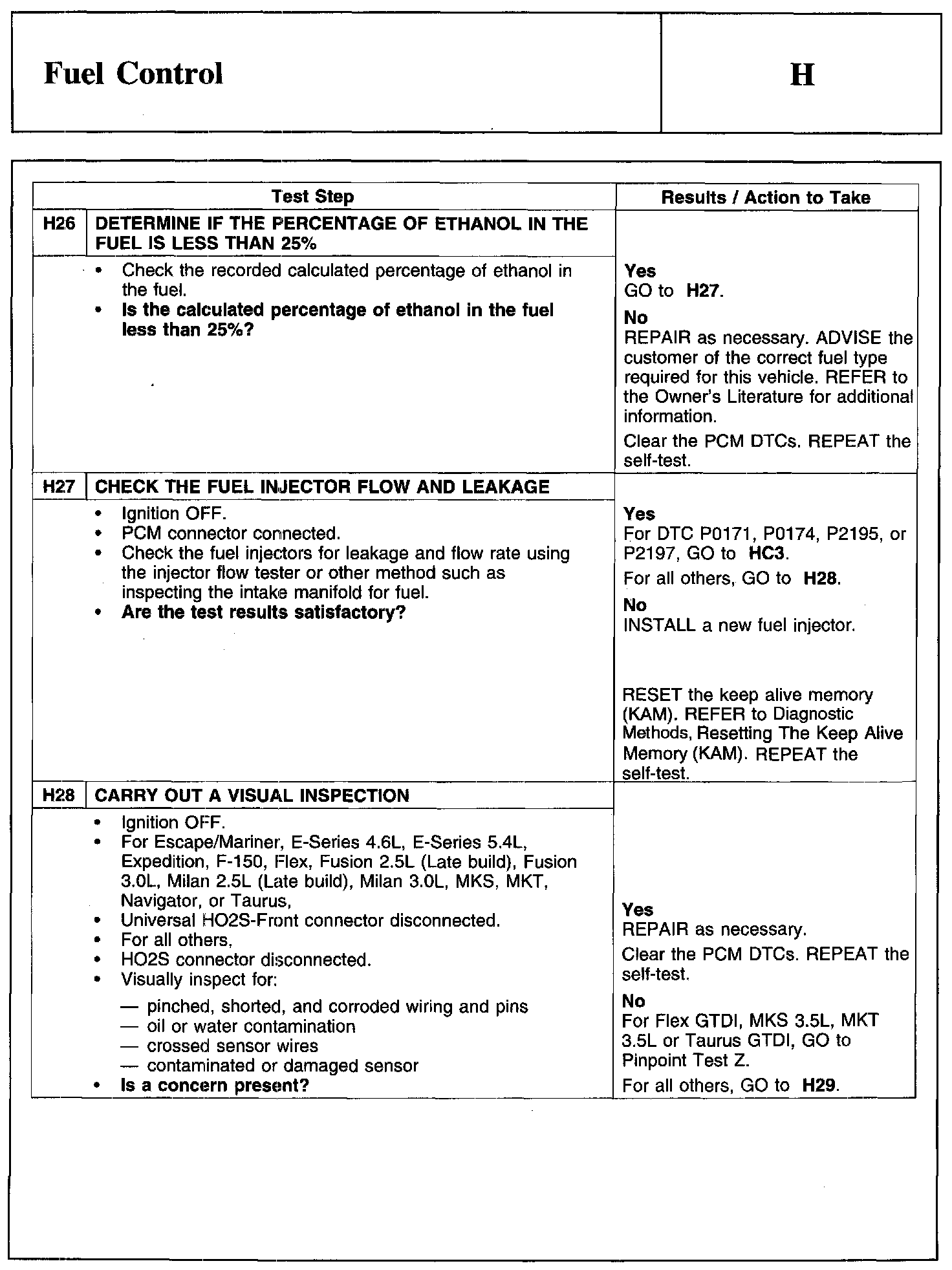 Home >> Ford >> 2010 >> Edge AWD V6-3.5L >> Repair and Diagnosis >> Powertrain Management >> Computers and Control Systems >> Testing and Inspection >> Pinpoint Tests >> Test H: Fuel Control