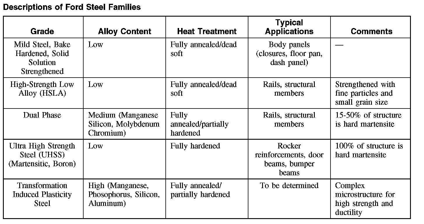 Descriptions Of Ford Steel Families: