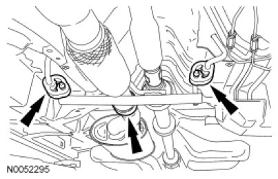 12. Remove the 4 bolts and position the stabilizer bar aside using a suitable length of mechanic's wire.