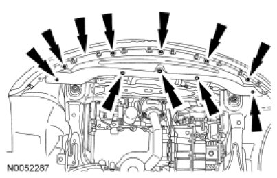 5. Remove the 3 LH subframe-to-lower bumper nuts and separate the lower bumper from the subframe.