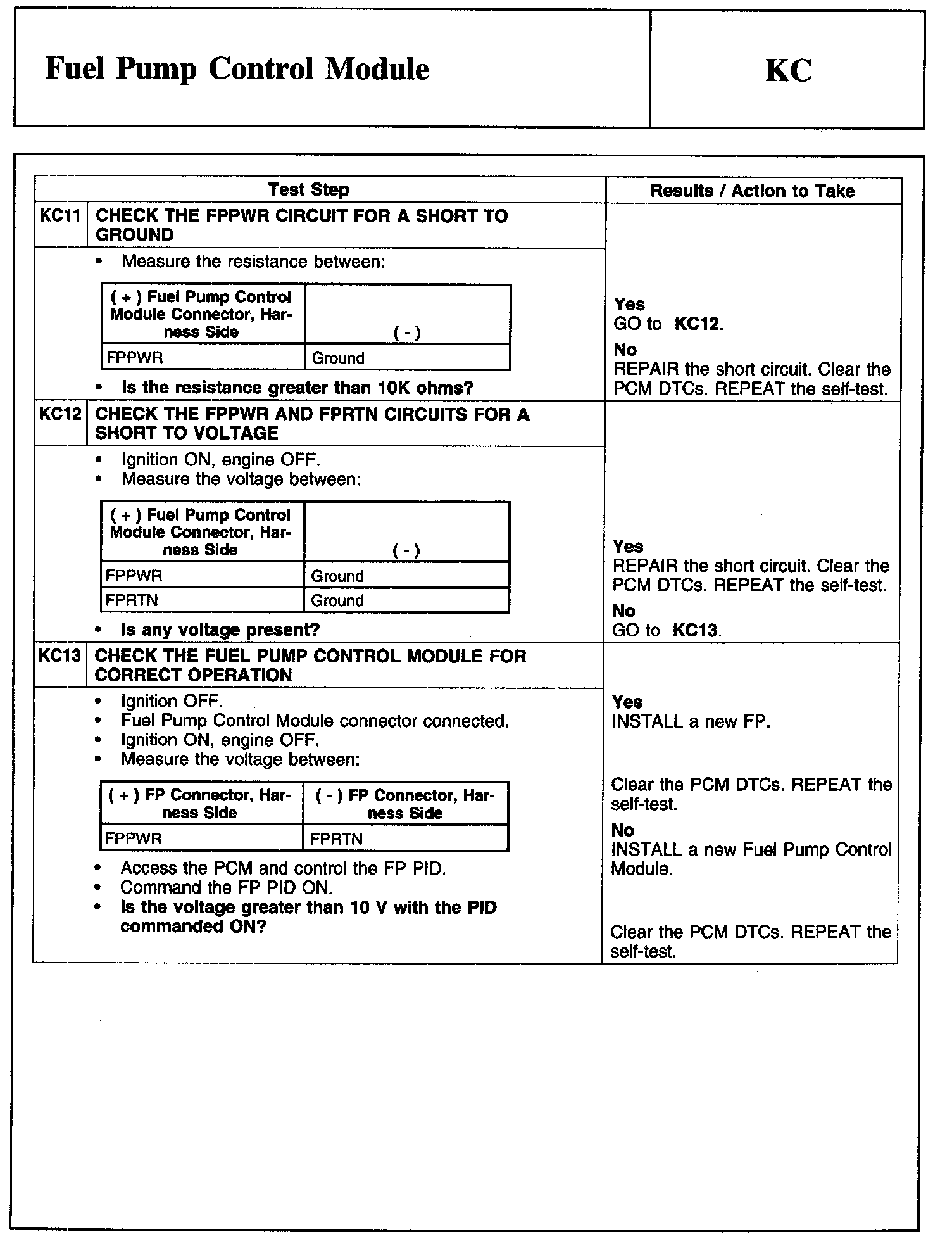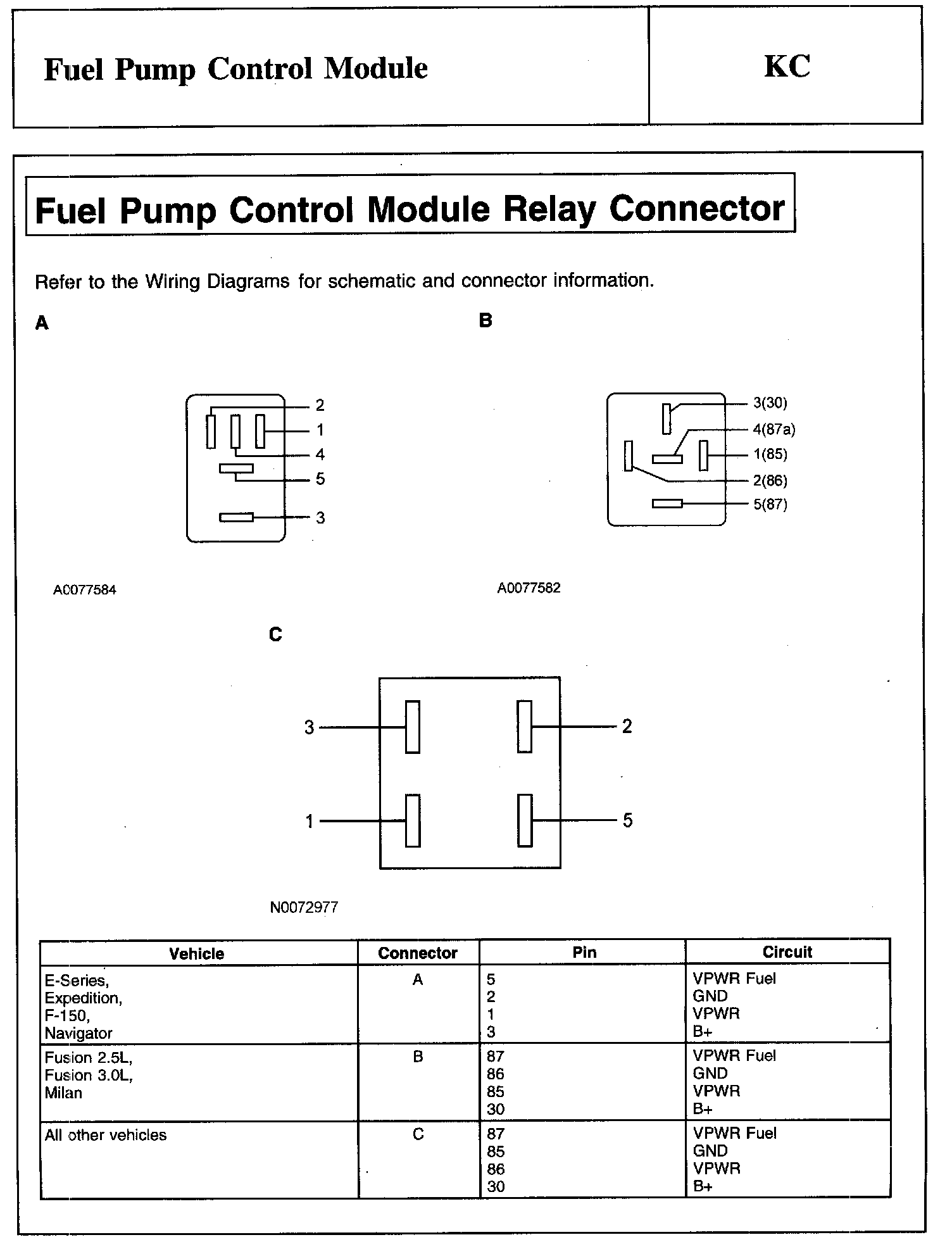 PINPOINT TEST KC: FUEL PUMP CONTROL MODULEFuel Pump Control Module Connector:
