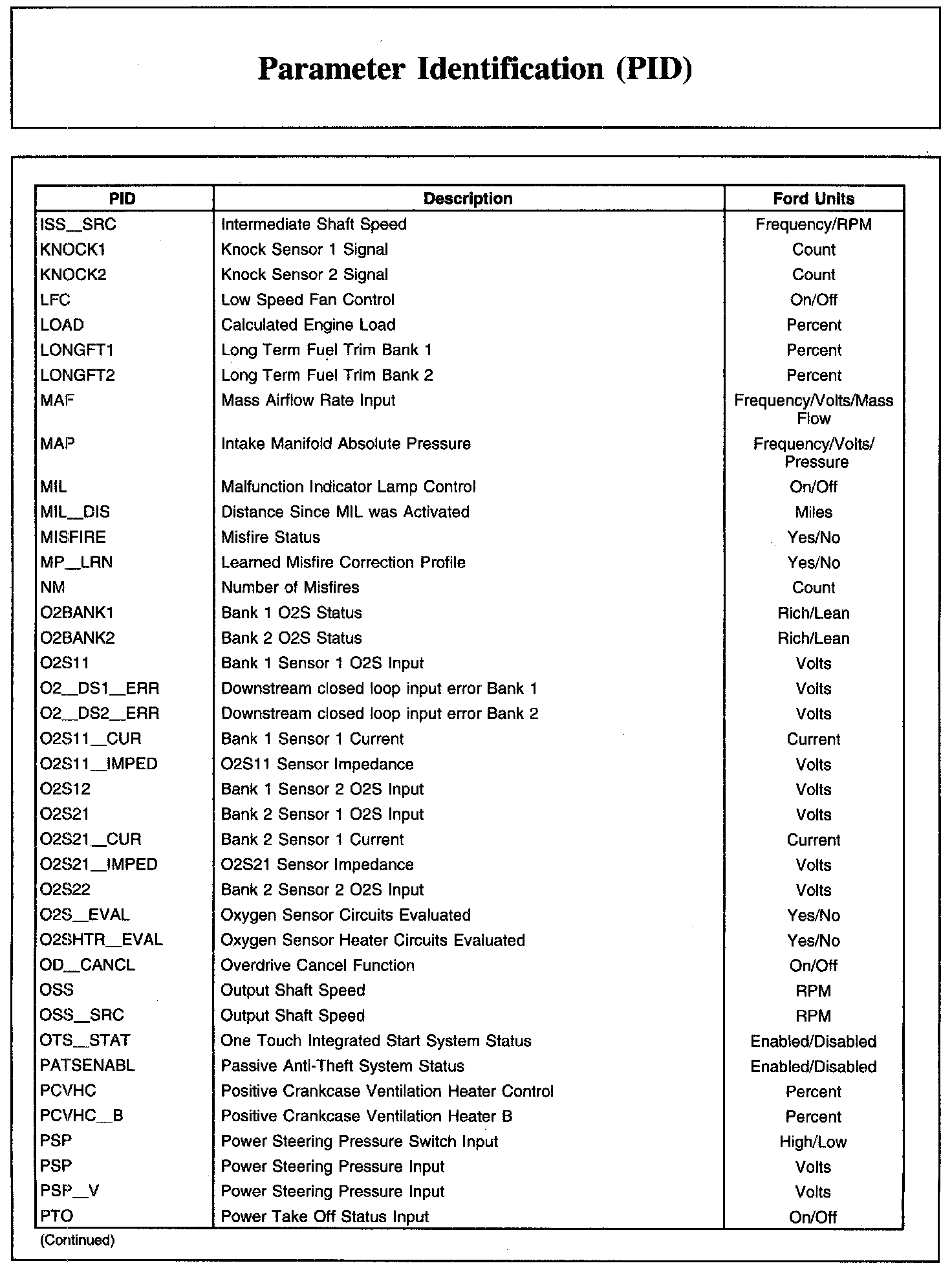 Home >> Ford >> 2010 >> Edge FWD V6-3.5L >> Repair and Diagnosis >> Powertrain Management >> Computers and Control Systems >> Testing and Inspection >> Scan Tool Testing and Procedures >> Parameter Identification (PID)
